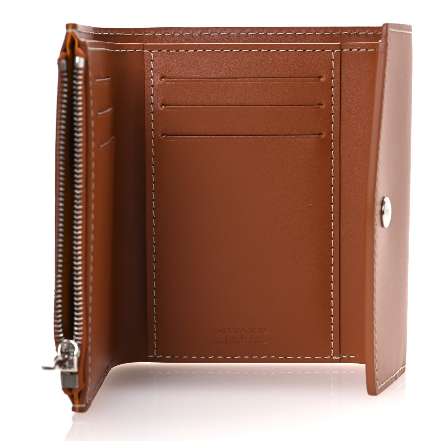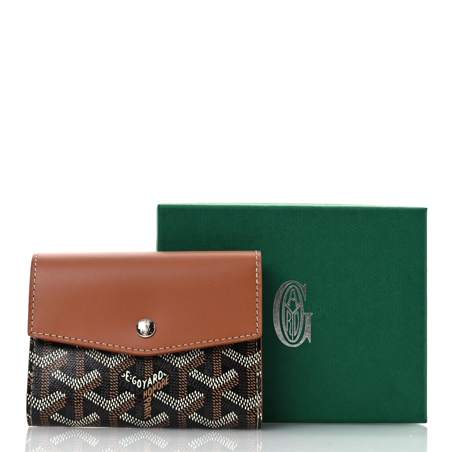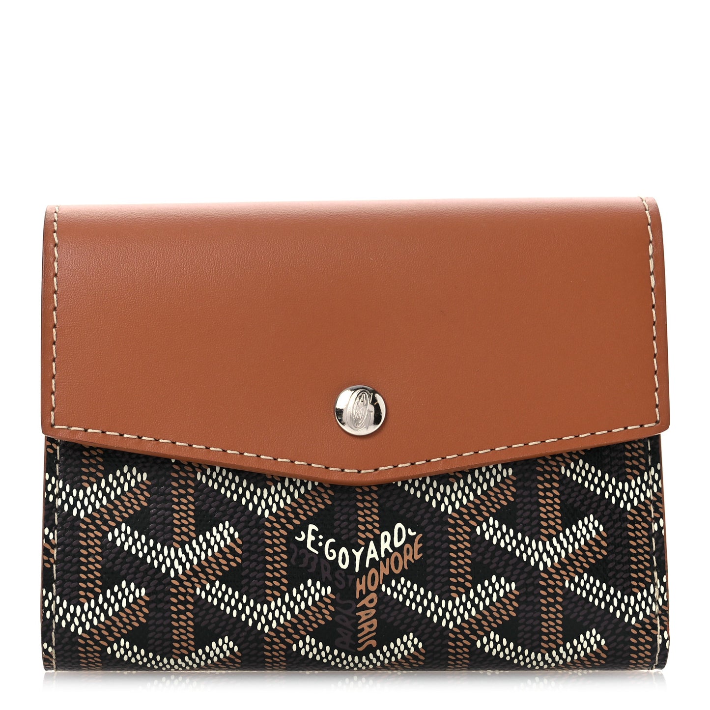This is an authentic GOYARD Goyardine Saint-Gabriel Compact Wallet in Black and Gold. This stylish wallet is crafted of black Goyard chevron canvas with a border of brown leather. The front flap opens to a compact brown leather interior of card slots, patch pockets, and a zipper compartment.Follow this item for alerts. Goyard is a registered trademark of Goyard. FASHIONPHILE is not affiliated with Goyard.