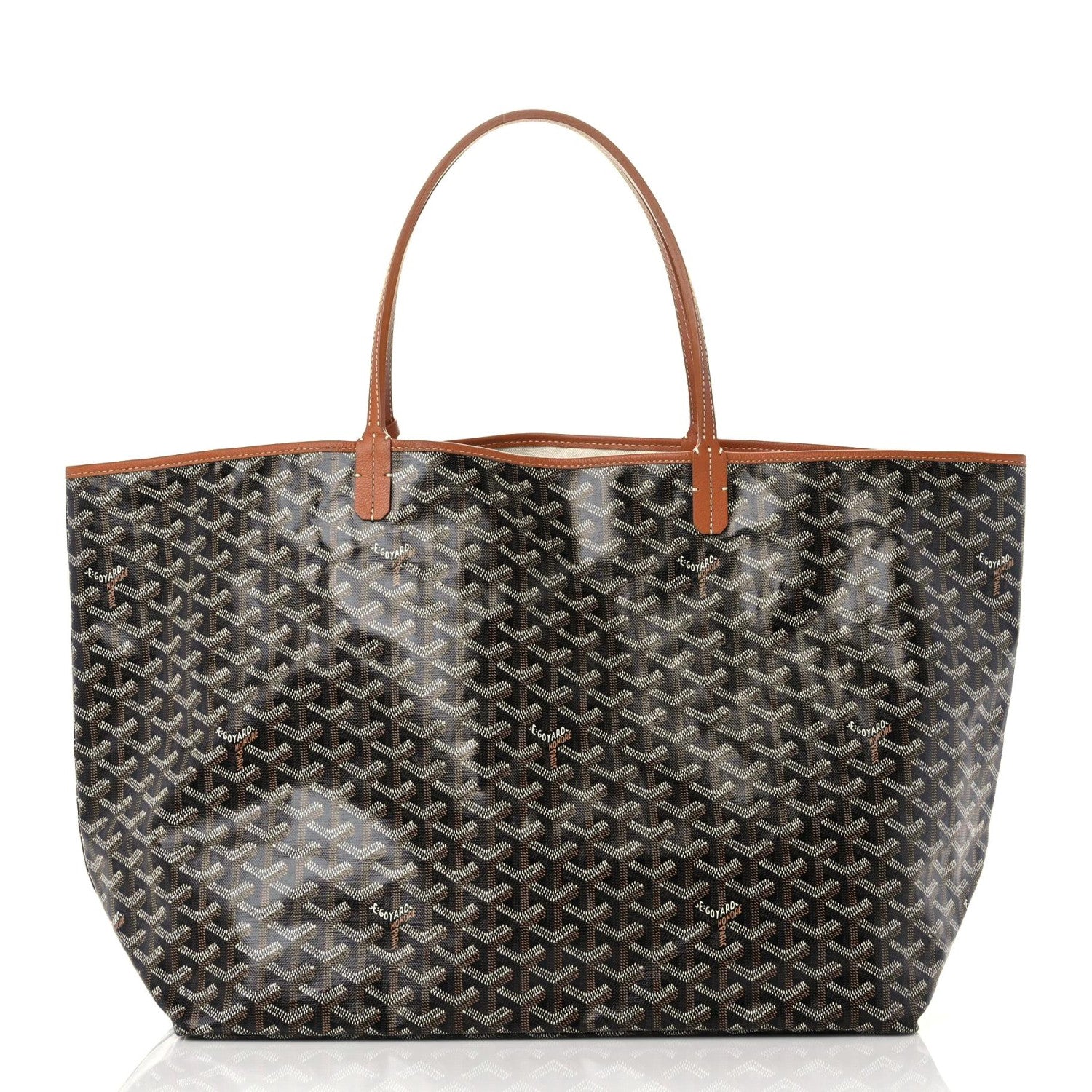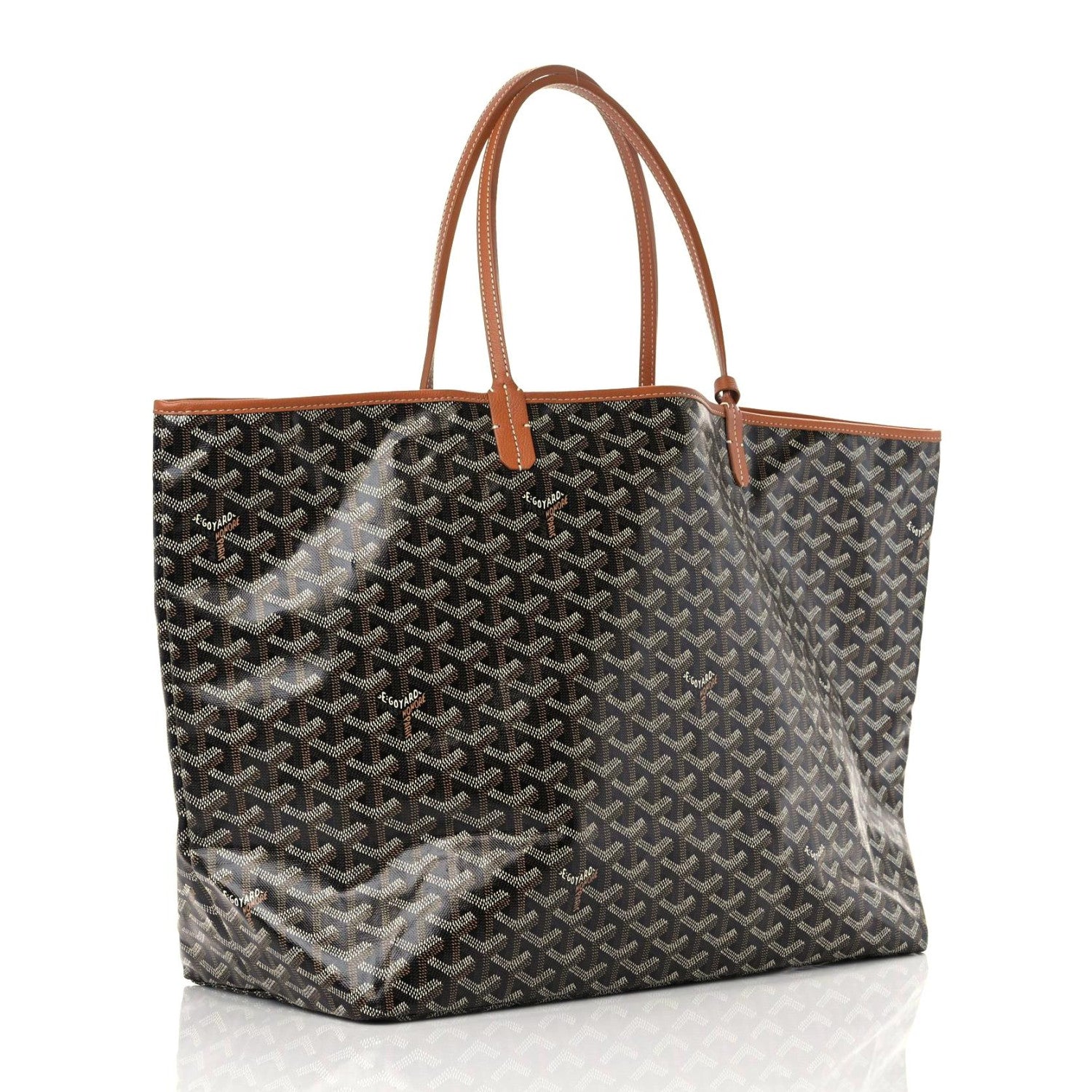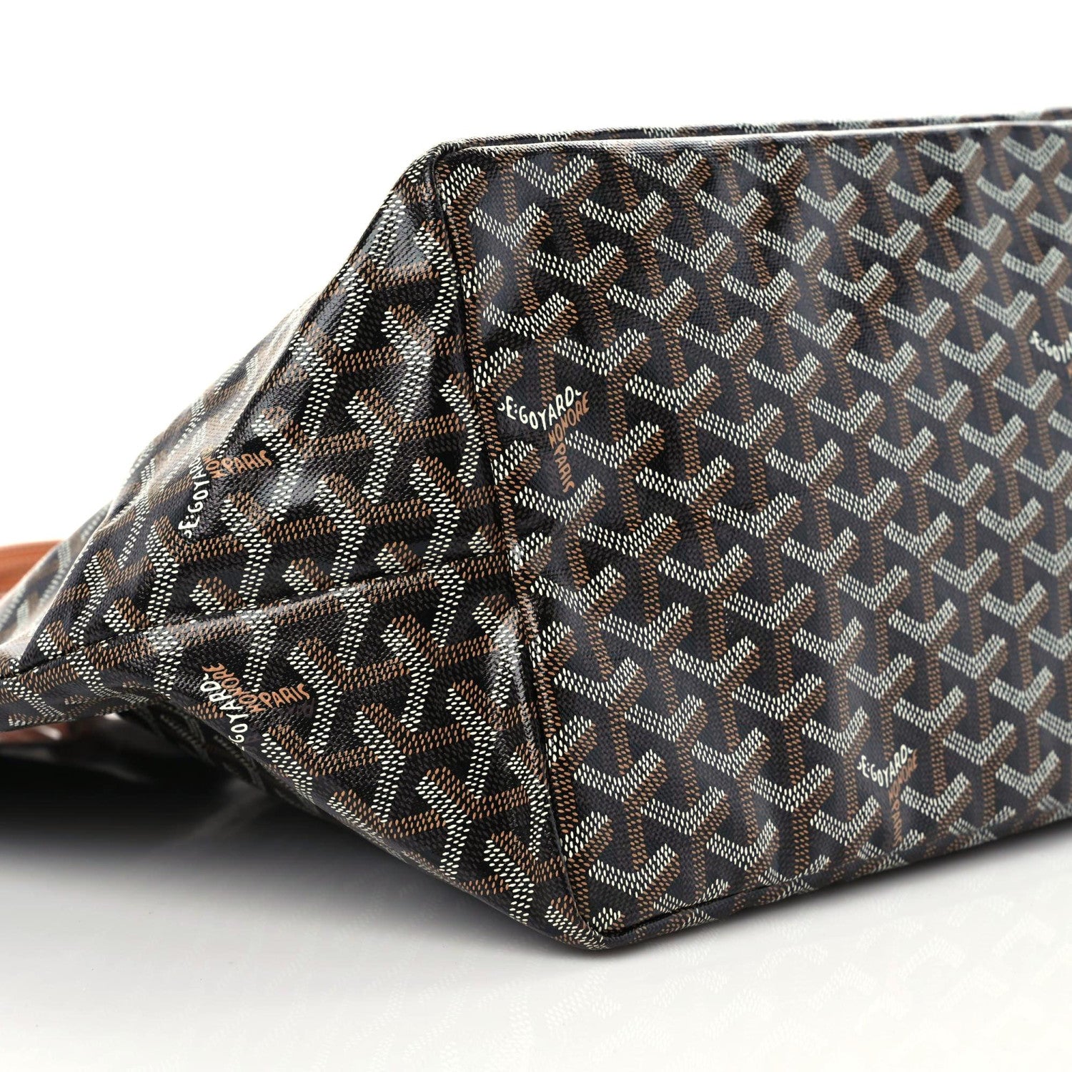 This is an authentic GOYARD Goyardine Saint Louis GM in Black and Gold. This tote is crafted of coated canvas with the classic Goyard chevron monogram in black. The bag features brown leather straps handles and top border trim. The shoulder bag top opens to a ivory linen interior with a matching removable pouch.Follow this item for alerts. Goyard is a registered trademark of Goyard. FASHIONPHILE is not affiliated with Goyard.