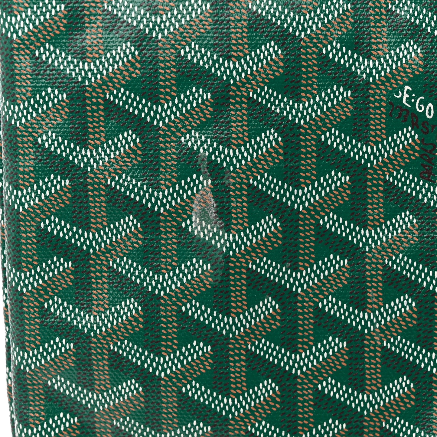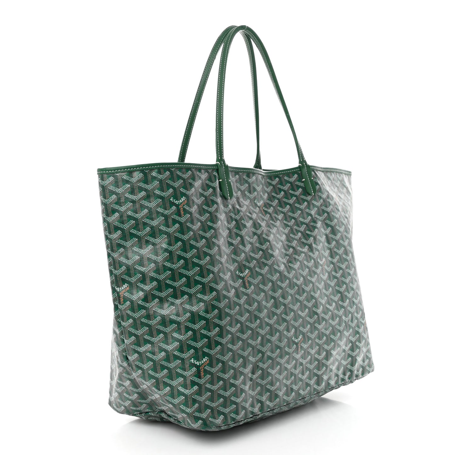 This is an authentic GOYARD Goyardine Saint Louis GM in Green. This stylish tote is crafted of traditional Goyard chevron print canvas in green. The bag features sturdy leather shoulder straps and matching trim. The top is open to a spacious canvas interior with a matching removable pouch.Follow this item for alerts. Goyard is a registered trademark of Goyard. FASHIONPHILE is not affiliated with Goyard.