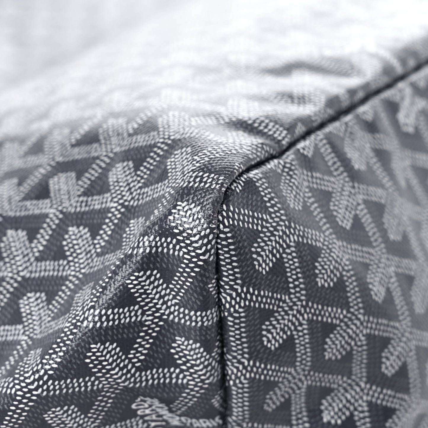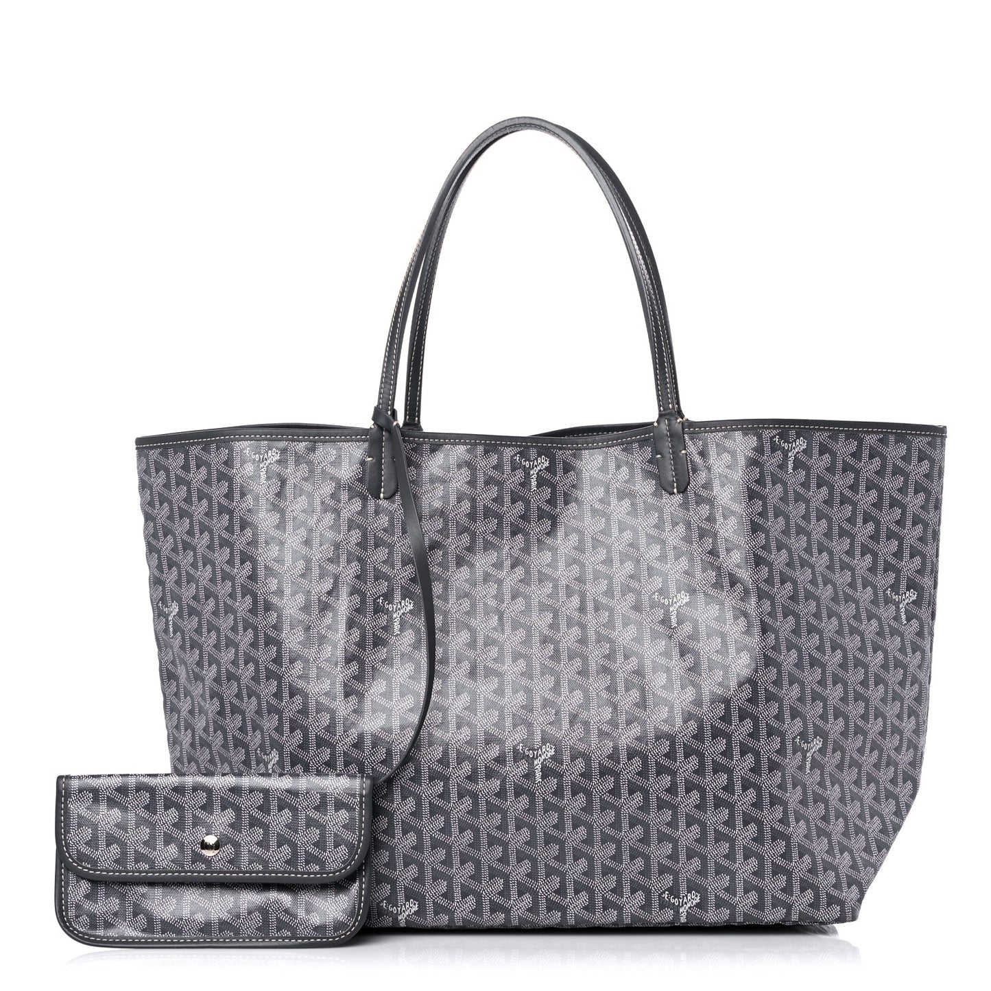 This is an authentic GOYARD Goyardine Saint Louis GM in Grey. This tote is crafted of coated canvas with the classic Goyard chevron monogram in gray. This bag features gray leather straps and top border trim. The top is open to a spacious natural canvas interior with a matching removable pouch.Follow this item for alerts. Goyard is a registered trademark of Goyard. FASHIONPHILE is not affiliated with Goyard.