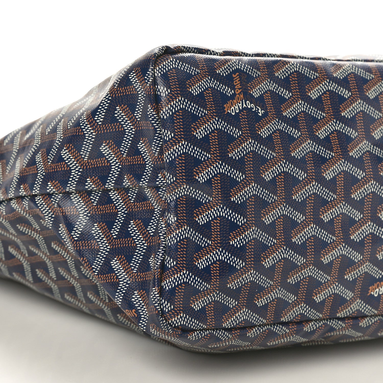This is an authentic GOYARD Goyardine Saint Louis PM in Navy. This tote is crafted of Goyard goyardine monogram chevron canvas in dark blue with leather detailing. This bag features leather strap handles, an open top and a spacious natural canvas interior with a removable pouch.Follow this item for alerts. Goyard is a registered trademark of Goyard. FASHIONPHILE is not affiliated with Goyard.