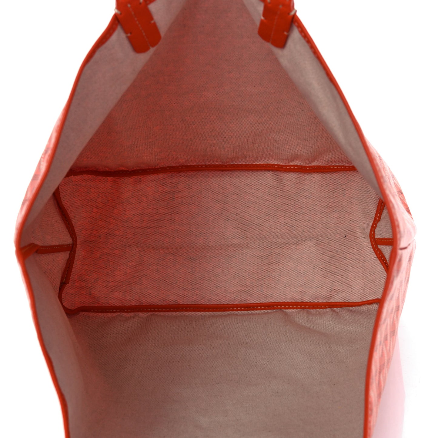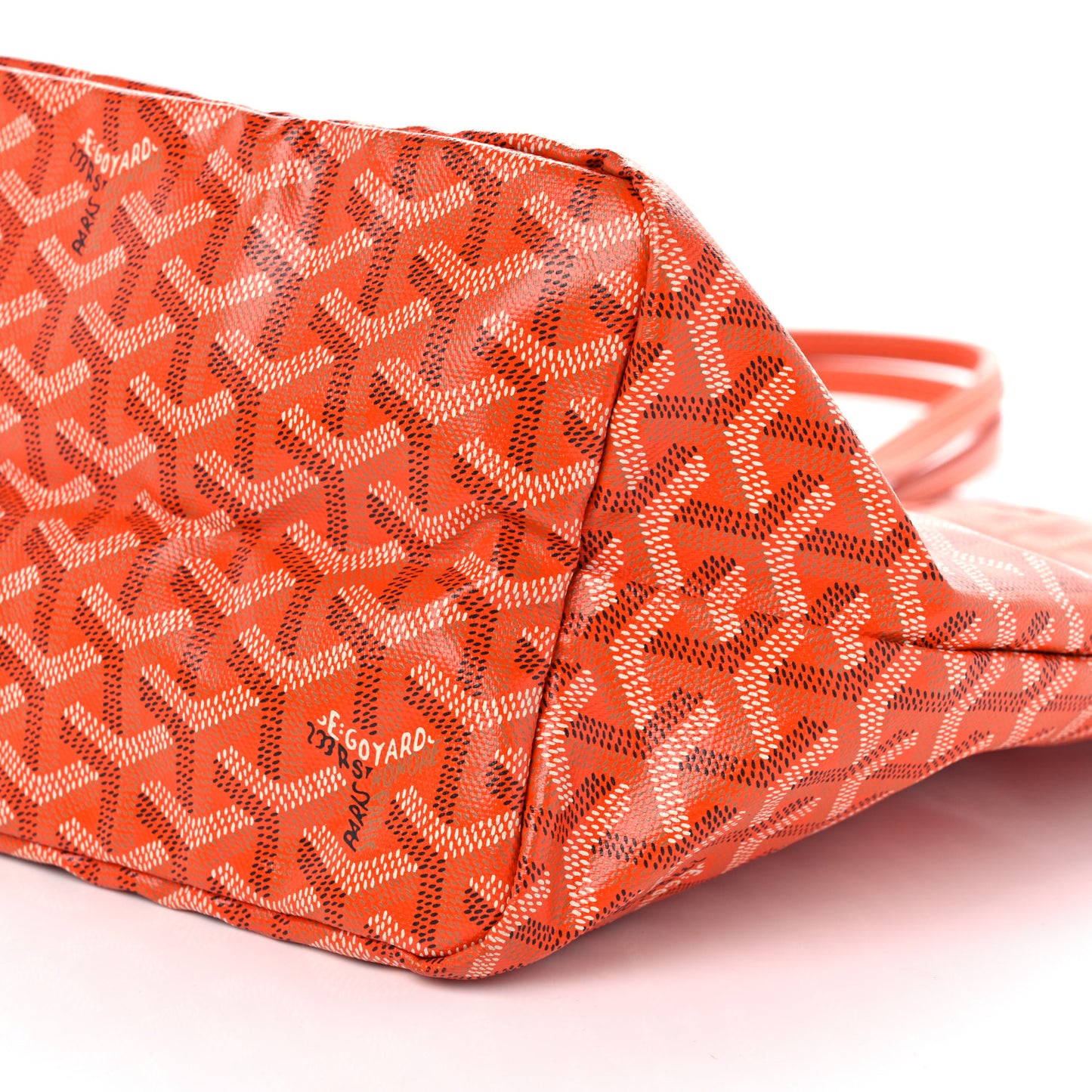 This is an authentic GOYARD Goyardine Saint Louis PM in Orange. This stylish tote is crafted of traditional Goyard chevron monogram on orange coated canvas. The bag features orange leather trim and shoulder straps, and a wide open top, revealing a spacious beige fabric interior with a matching removable pouch.Follow this item for alerts. Goyard is a registered trademark of Goyard. FASHIONPHILE is not affiliated with Goyard.