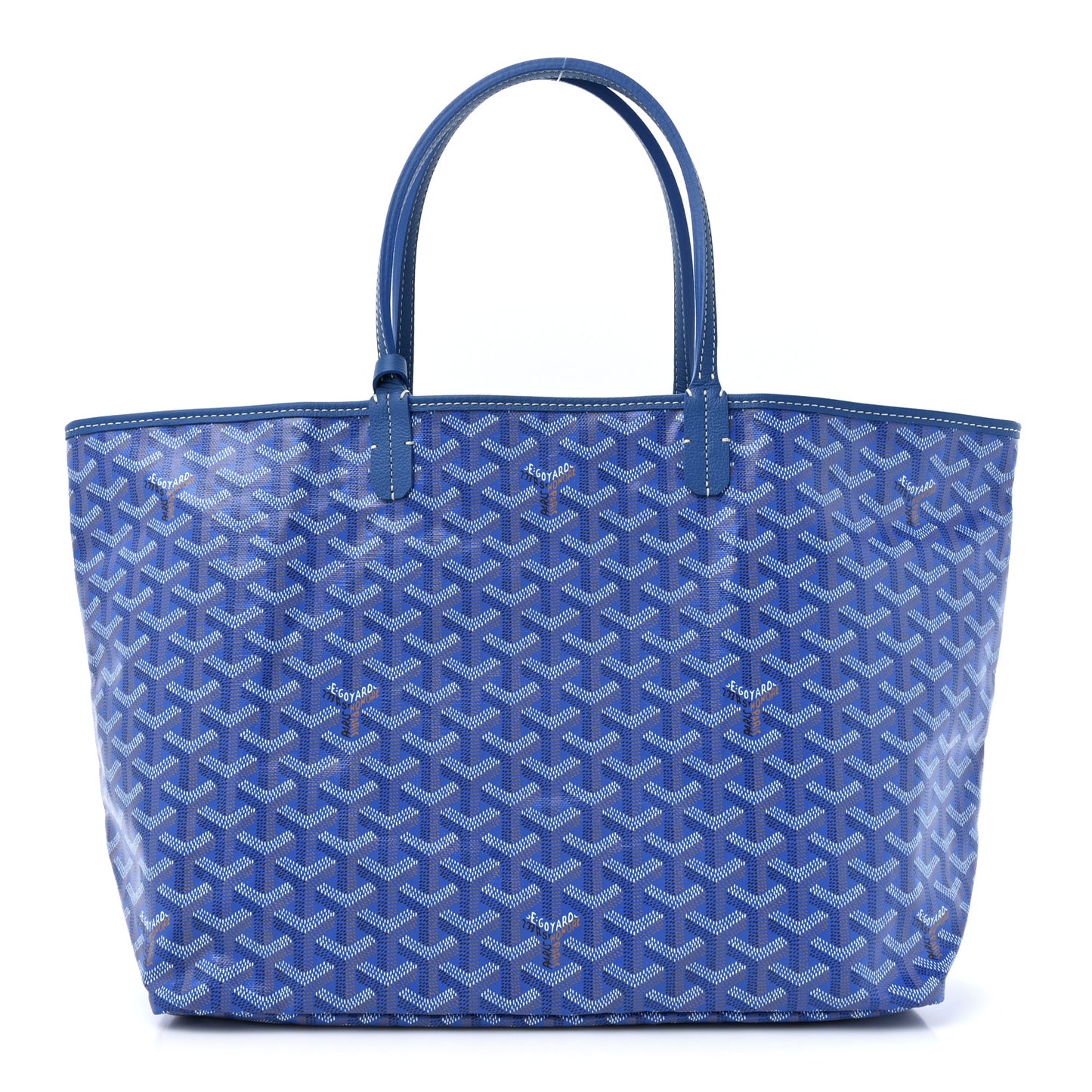 This is an authentic GOYARD Goyardine Saint Louis PM in Sky Blue. This stylish tote is crafted of coated canvas with the classic Goyard goyardine chevron monogram in the smaller size in blue. The bag features blue leather straps and trim. The top is open to a spacious natural canvas interior with a matching removable pouch.Follow this item for alerts. Goyard is a registered trademark of Goyard. FASHIONPHILE is not affiliated with Goyard.