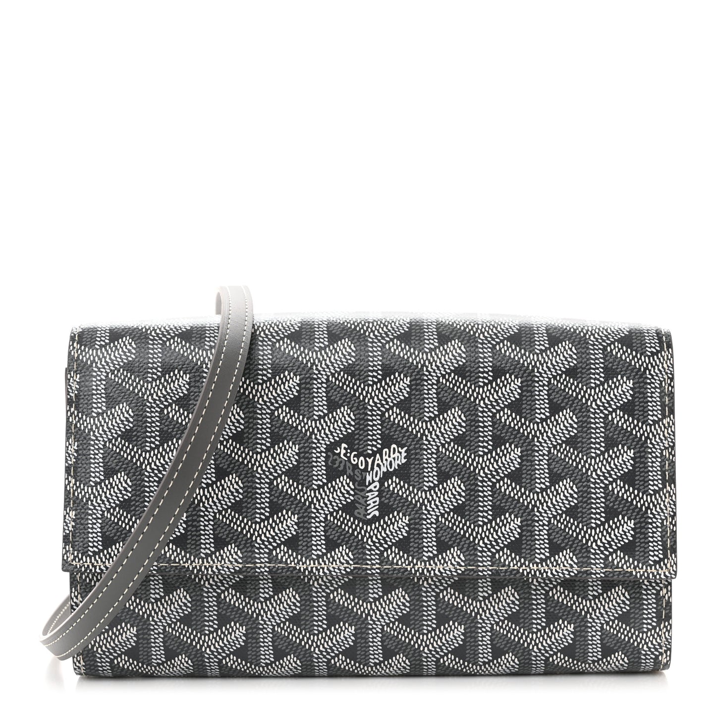 This is an authentic GOYARD Goyardine Varenne Continental Wallet in Grey. This stylish shoulder bag is crafted of coated canvas with the classic Goyard chevron monogram in grey. The shoulder bag features a removable strap, grey leather trim and silver hardware. The flap opens to a grey interior.Follow this item for alerts. Goyard is a registered trademark of Goyard. FASHIONPHILE is not affiliated with Goyard.