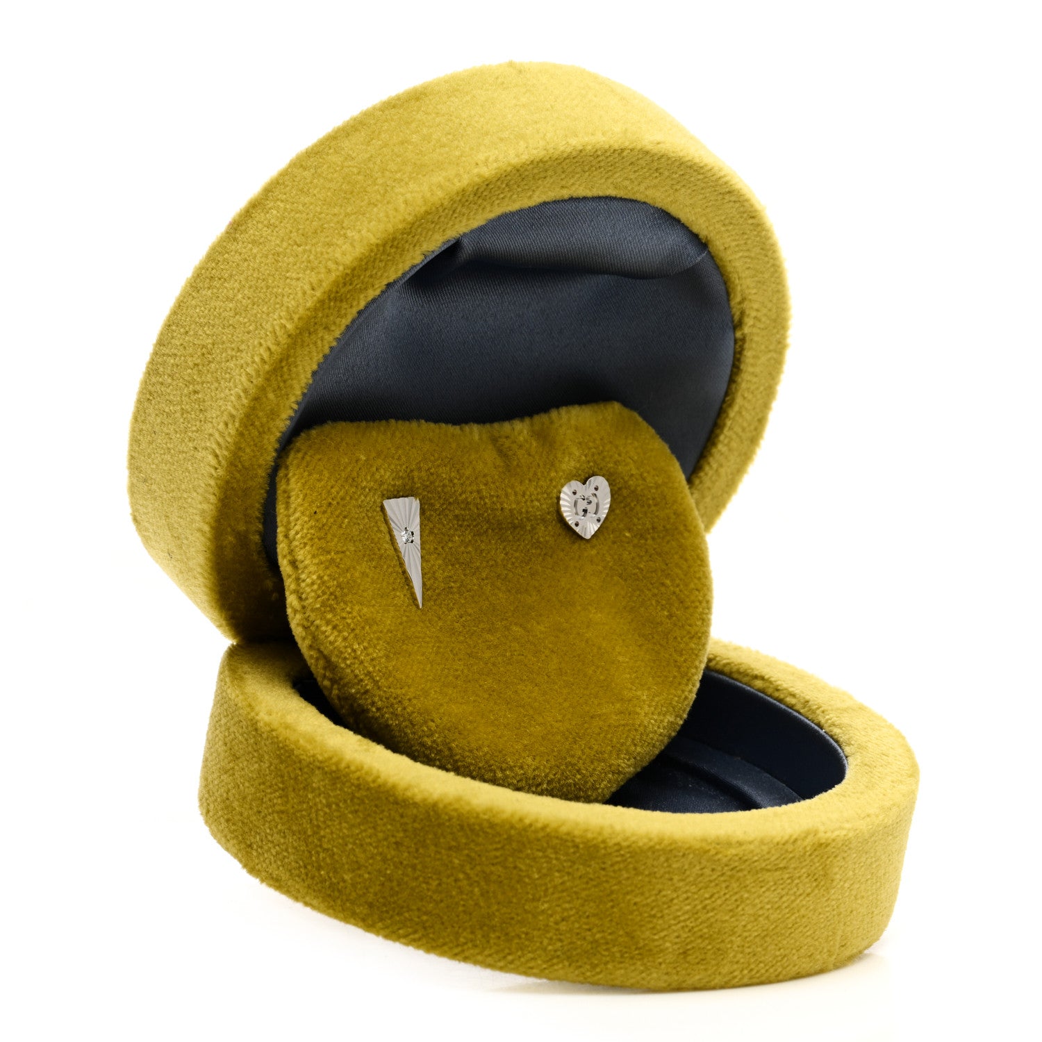 This is an authentic pair of GUCCI 18K White Gold Diamond Icon Asymmetric Stud Earrings. The earrings are crafted of 18 karat white gold and feature a faceted heart motif and triangle motif with a star-set round cut diamond in the center, approximately .02 carats.Follow this item for alerts. Gucci is a registered trademark of Gucci. FASHIONPHILE is not affiliated with Gucci.