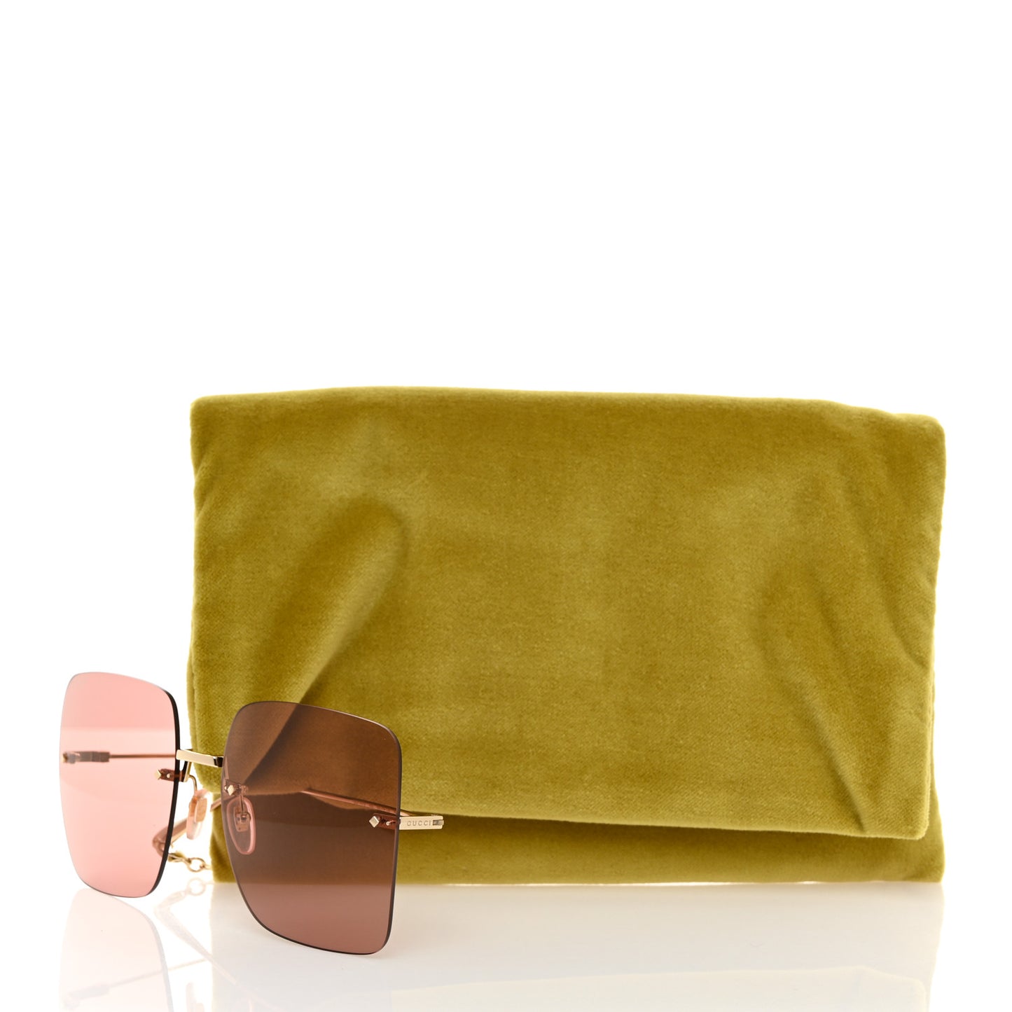 This is an authentic pair of GUCCI Acetate Detachable Charm Square Frame Sunglasses GG1147S in Pink. These stylish oversize sunglasses have pink squared lenses with thin gold arms and two removable popsicle charms.Follow this item for alerts. Gucci is a registered trademark of Gucci. FASHIONPHILE is not affiliated with Gucci.