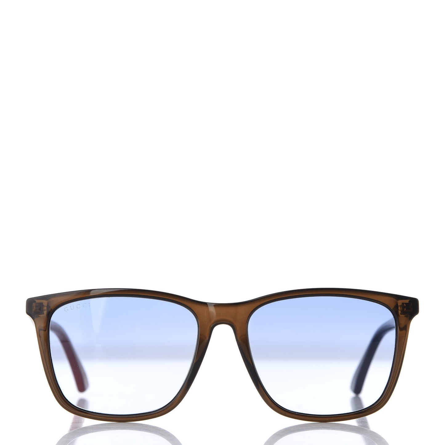 This is an authentic pair of GUCCI Acetate Square Frame Sunglasses GG0404S in Brown. These stylish sunglasses have a vintage style glossy brown frame with blue lenses. These feature brown narrow arms that are tipped with one side red and one side blue. Enjoy these stylish sunglasses for everyday use with the chic one of a kind look from Gucci!Follow this item for alerts. Gucci is a registered trademark of Gucci. FASHIONPHILE is not affiliated with Gucci.