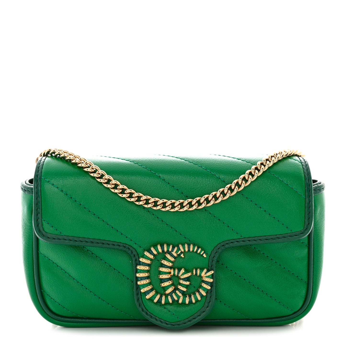 Gucci/ Bags/ Shoulder Bags /Gucci Azalea Calfskin Enamel Matelasse Diagonal Super Mini Torchon GG Marmont Shoulder Bag New Shamarock Emerald