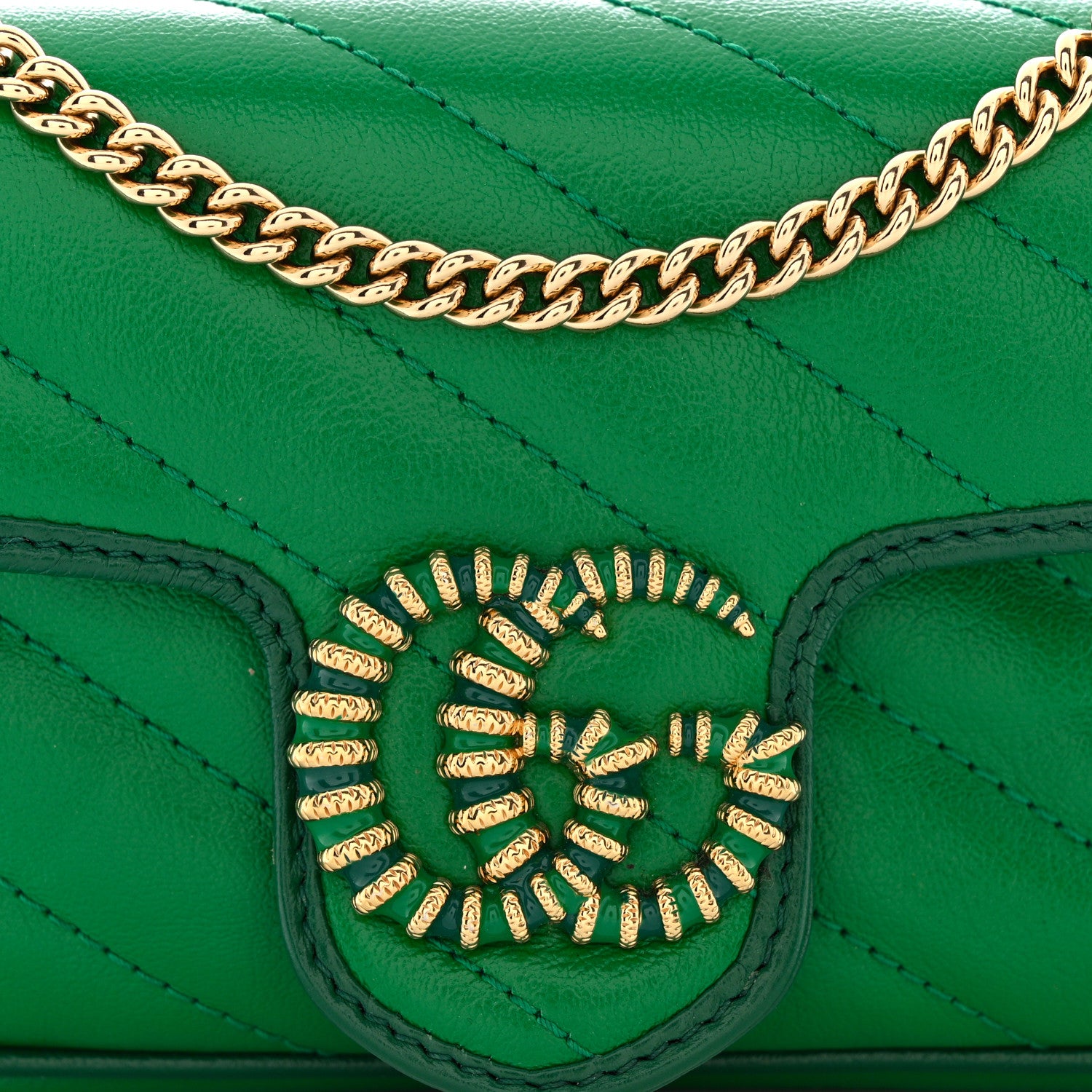 Azalea Calfskin Enamel Matelasse Diagonal Super Mini Torchon GG Marmont Shoulder Bag New Shamarock Emerald
