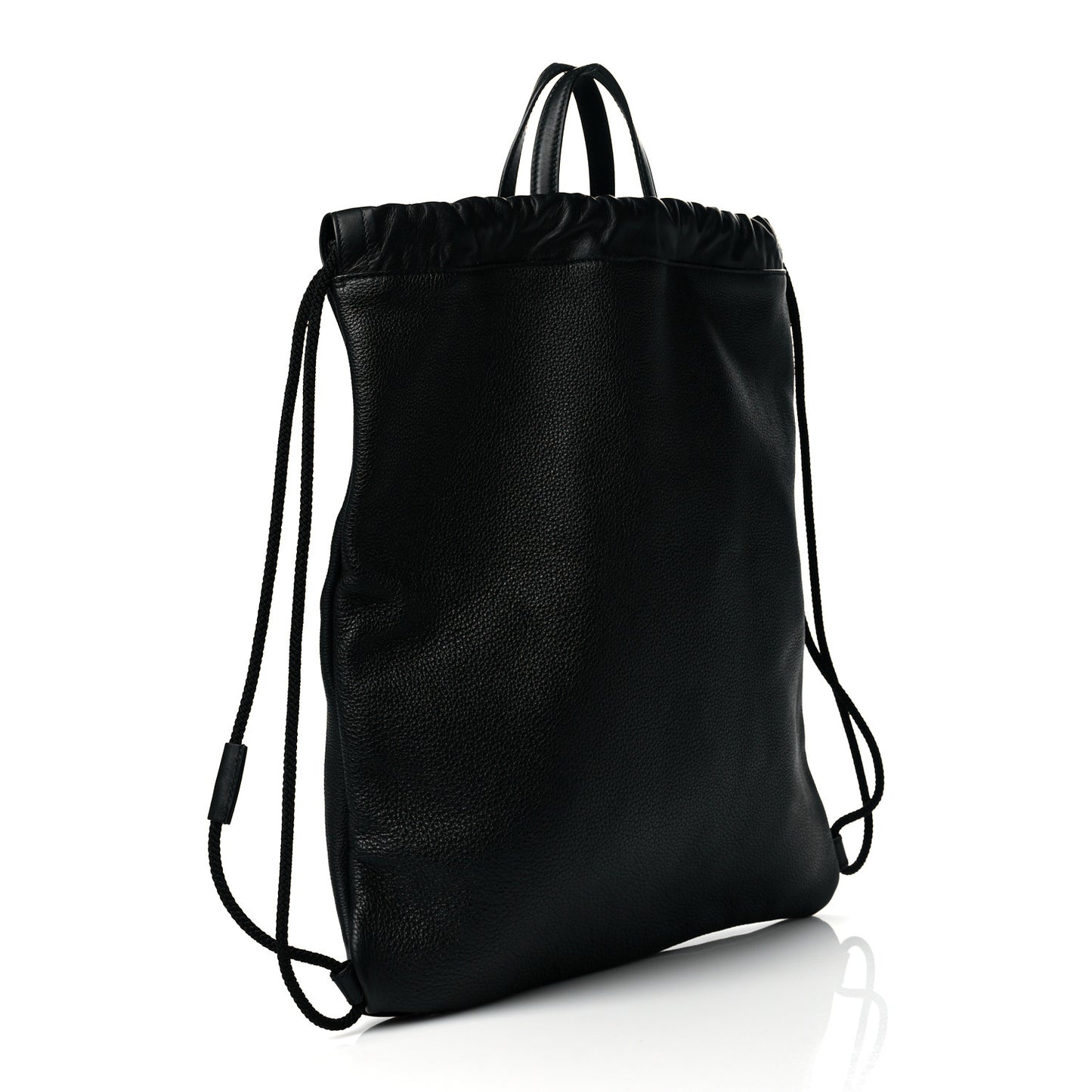 Calfskin Coco Capitan Logo Drawstring Backpack Black