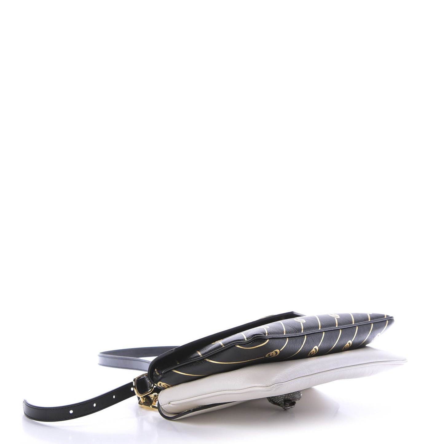 Gucci/ Bags/ Shoulder Bags /Gucci Calfskin Diagonal GG Medium Thiara Double Envelope Shoulder Bag Black White