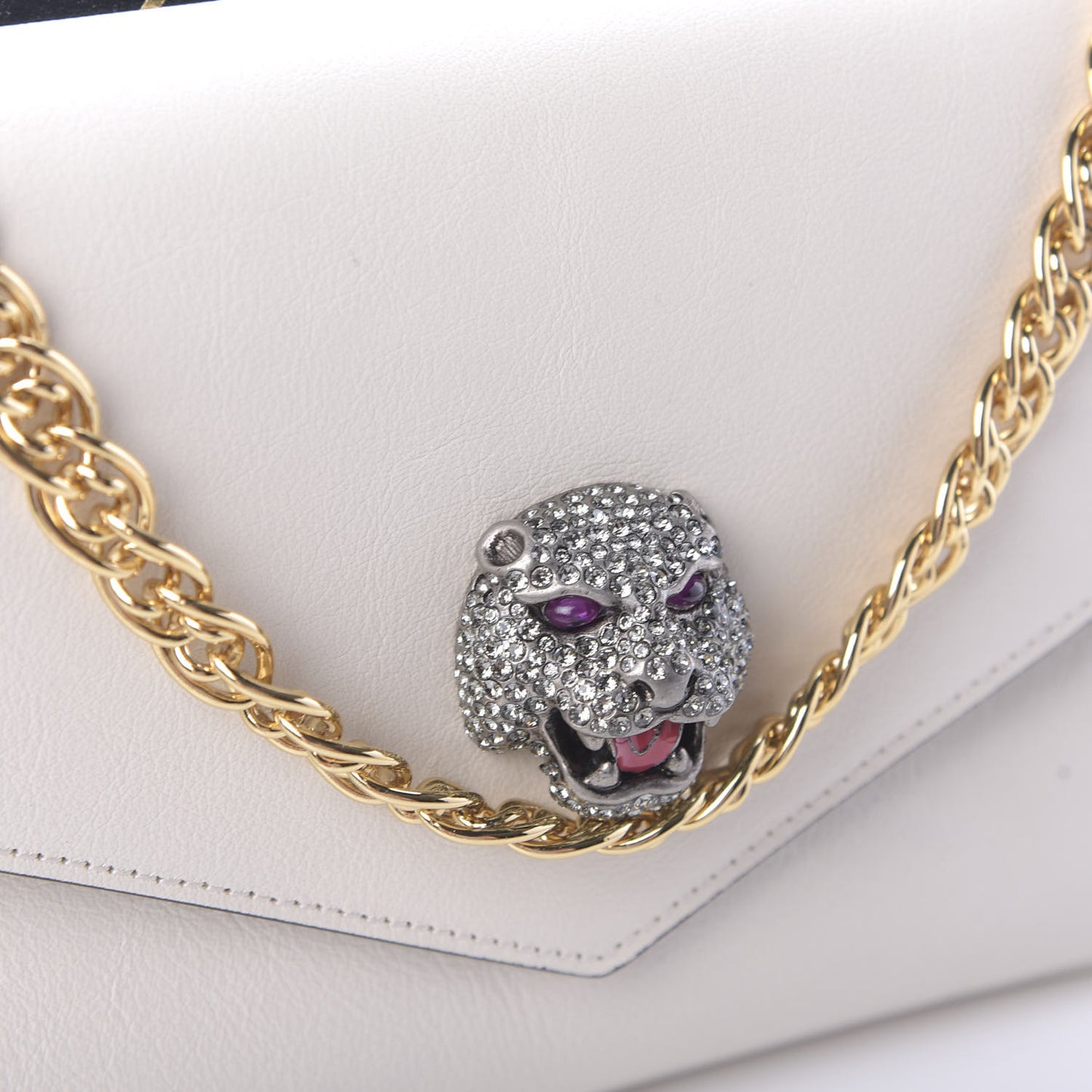 This is an authentic GUCCI Calfskin Medium Double Shoulder Bag in Black and White. This double-sided flap bag is crafted of calfskin leather in half off white and half black. The bag features a gold chain-link strap and an optional, adjustable black leather shoulder strap. The bag opens on either side to a blue fabric interior with a zipper and a patch pocket.Follow this item for alerts. Gucci is a registered trademark of Gucci. FASHIONPHILE is not affiliated with Gucci.