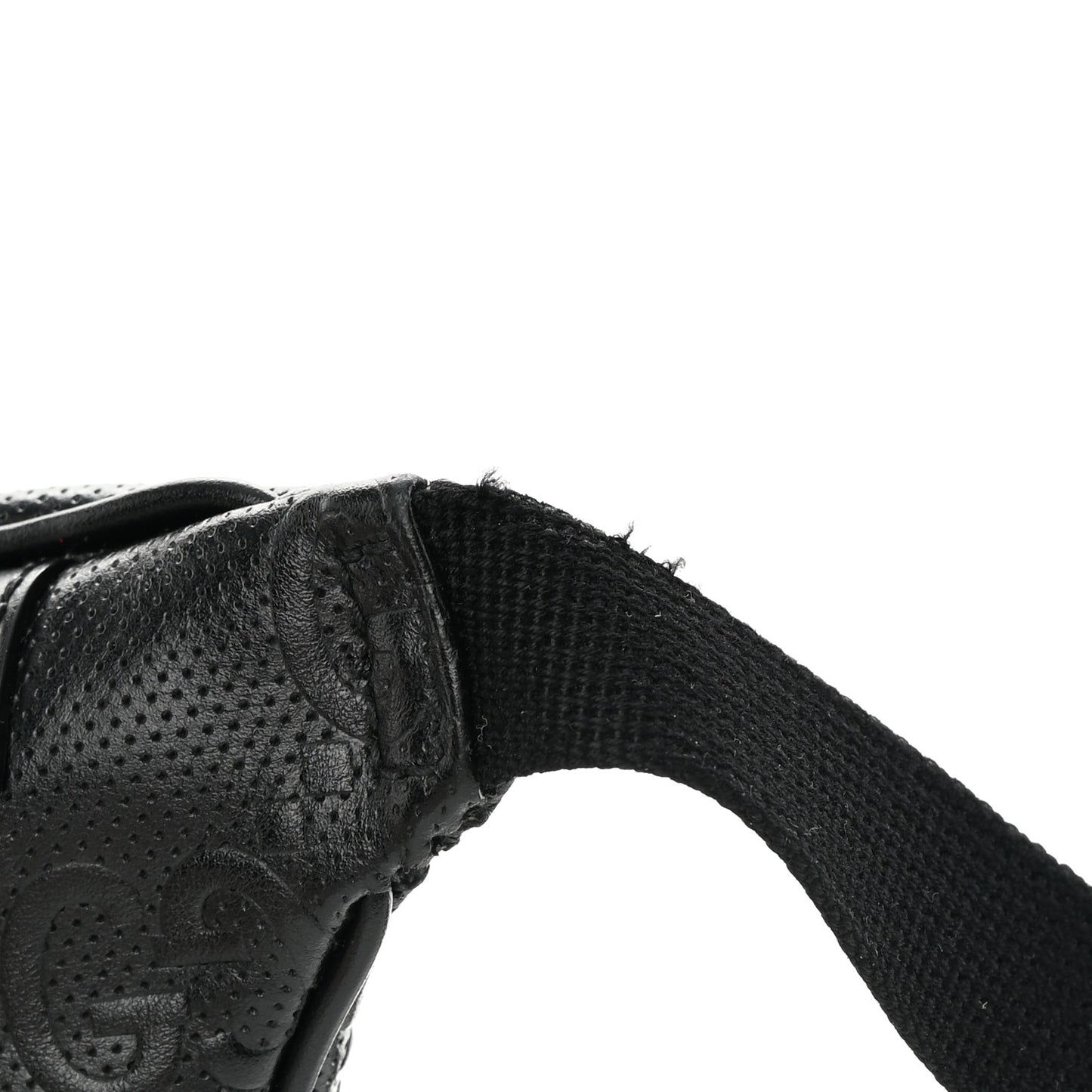 This is an authentic GUCCI Calfskin GG Tennis Embossed Belt Bag in Black. This belt bag is crafted of black perforated calfskin with the GG logo embossed throughout. This bag has a black canvas belt strap that can be worn as a belt bag on the hip or waist. It opens to a beige interior.Follow this item for alerts. Gucci is a registered trademark of Gucci. FASHIONPHILE is not affiliated with Gucci.