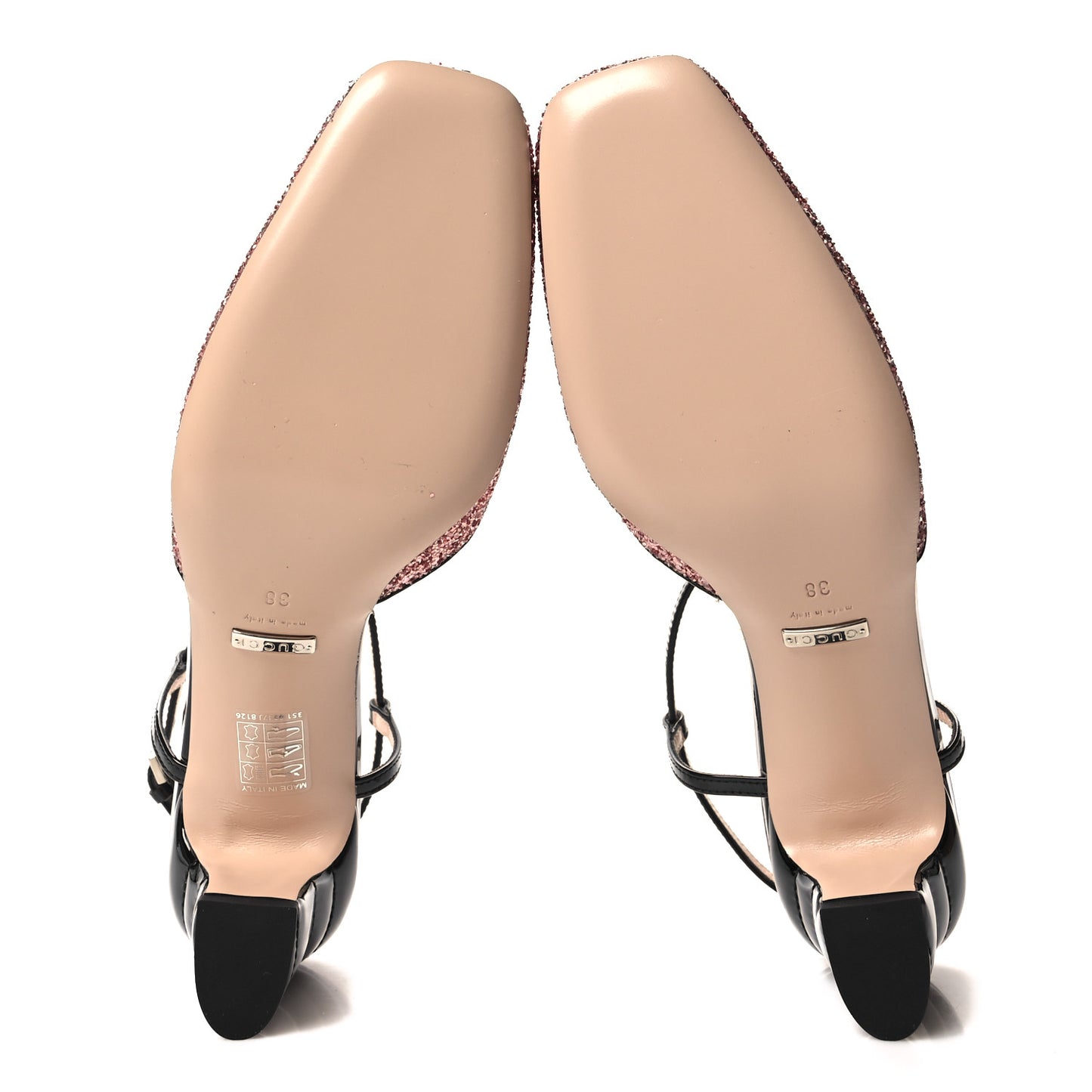 Calfskin Glitter Double G 55mm Slingback Pumps 38 Black Pink Glitter