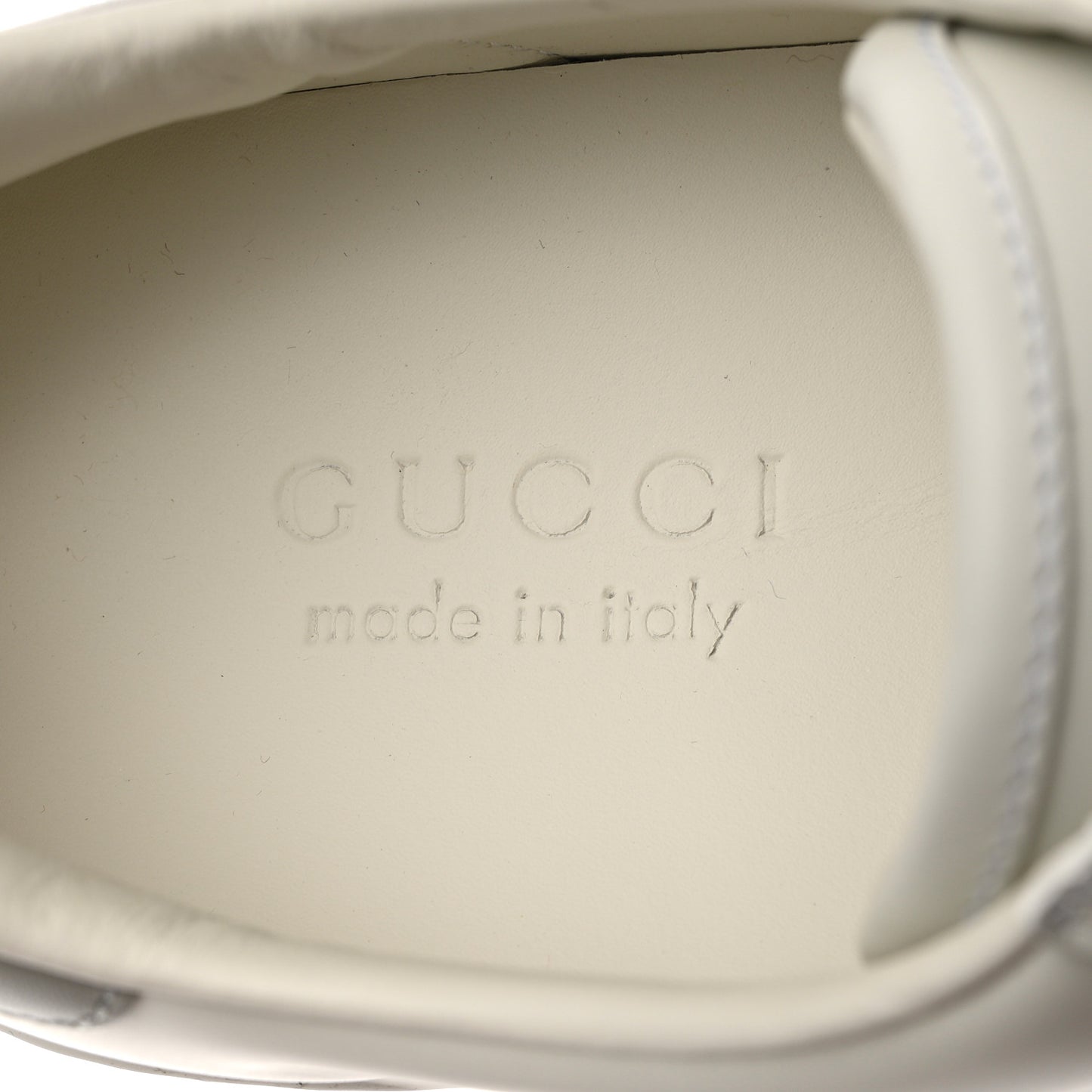 This is an authentic pair of GUCCI Calfskin Interlocking G Perforated Mens Ace Sneakers size 8 in White and Grey Sky. These stylish sneakers are crafted of white leather with a perforated Gucci GG logo and grey leather accent at the heel.Follow this item for alerts. Gucci is a registered trademark of Gucci. FASHIONPHILE is not affiliated with Gucci.
