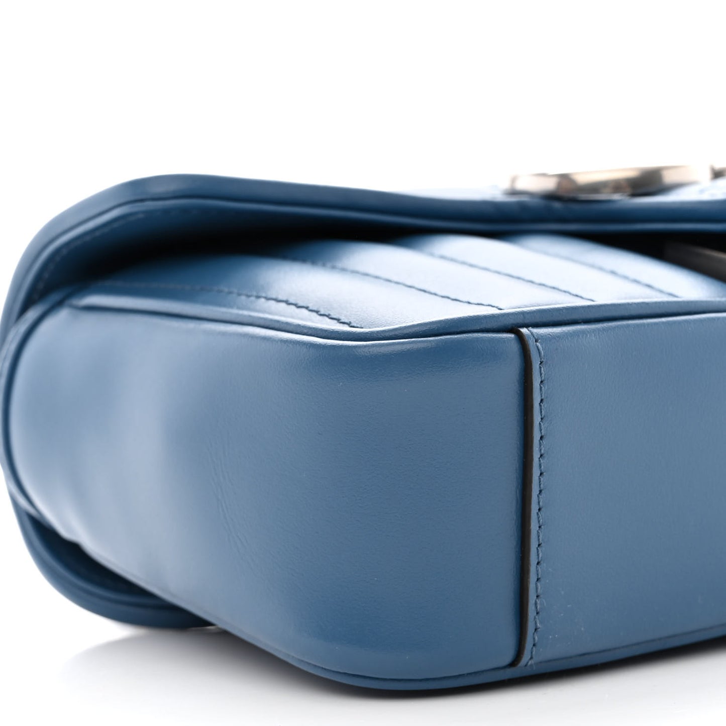This is an authentic GUCCI Calfskin Matelasse Mini Aria GG Marmont Shoulder Bag in Clear Blue. This stylish shoulder bag is crafted of chevron-quilted calfskin leather. The bag features an antique silver chain link shoulder strap and a matching antique silver Gucci GG logo on the crossover flap. The bag opens with a press lock to a beige fabric interior with a pocket.Follow this item for alerts. Gucci is a registered trademark of Gucci. FASHIONPHILE is not affiliated with Gucci.