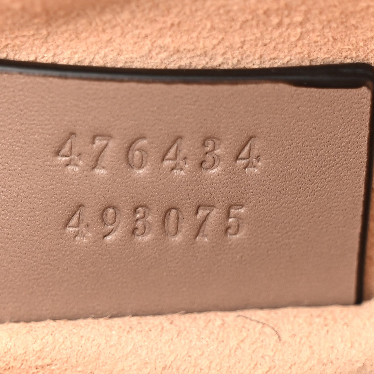 This is an authentic GUCCI Calfskin Matelasse GG Marmont Belt Bag size 95 or 38 in Porcelain Rose. This belt bag is crafted of beige pink chevron stitched calfskin leather. It features an aged gold GG logo on the front and a heart stitched shape on the back of the bag with an adjustable belt. It opens to a beige microfiber interior with a patch pocket.Follow this item for alerts. Gucci is a registered trademark of Gucci. FASHIONPHILE is not affiliated with Gucci.