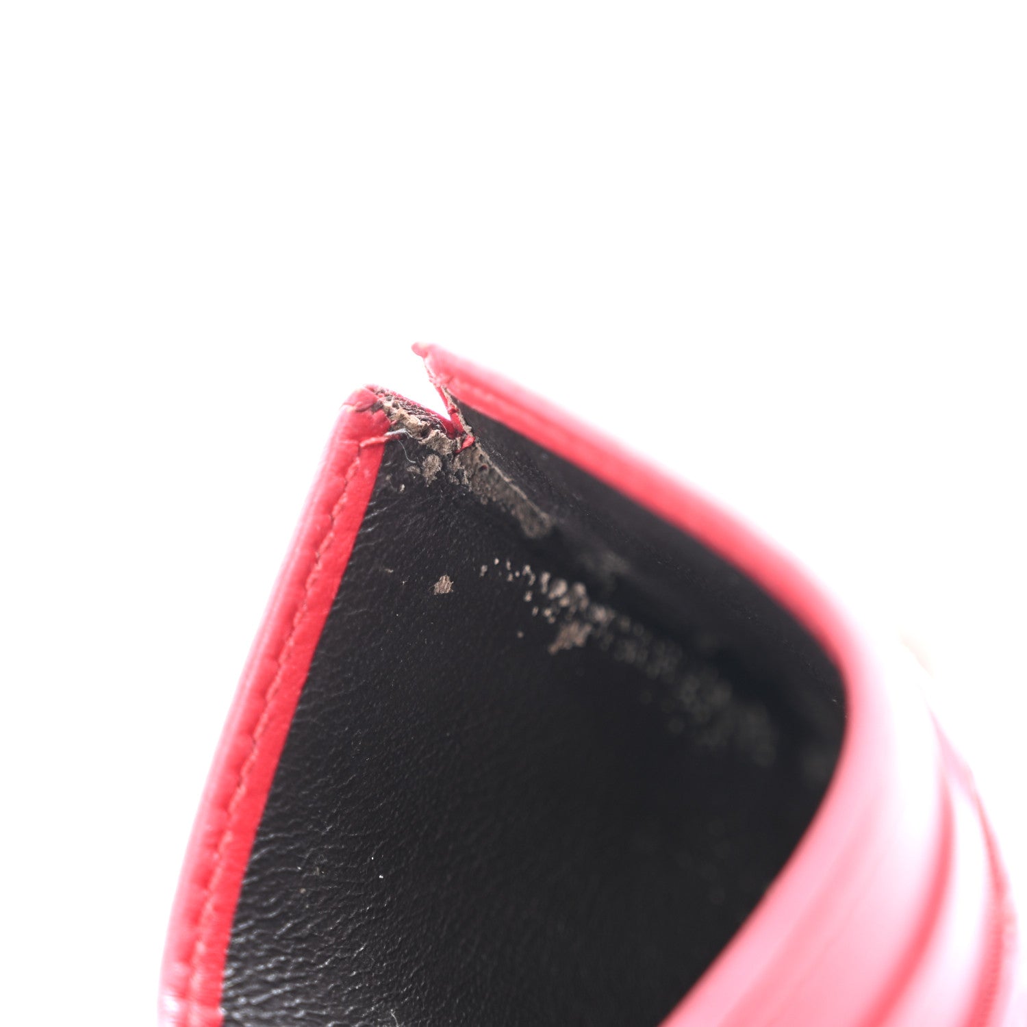 Interior: Scuffs, lining peeling, tear in seam, marks, card slots are stretched