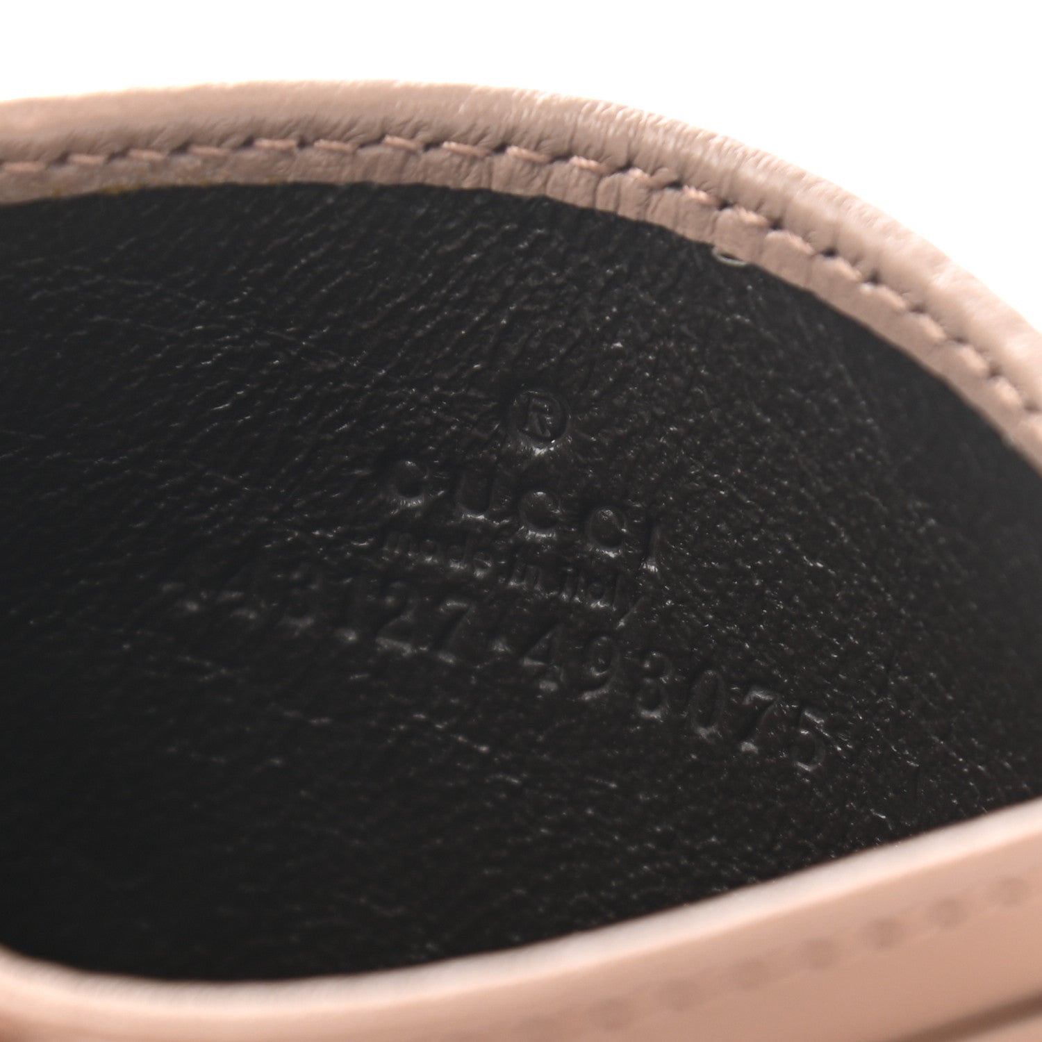 This is an authentic GUCCI Calfskin Matelasse GG Marmont Card Holder in Porcelain Rose. This stylish cardholder is crafted of calfskin leather in beige featuring chevron style stitching, an aged gold double GG monogram, and a total of five card slots.Follow this item for alerts. Gucci is a registered trademark of Gucci. FASHIONPHILE is not affiliated with Gucci.