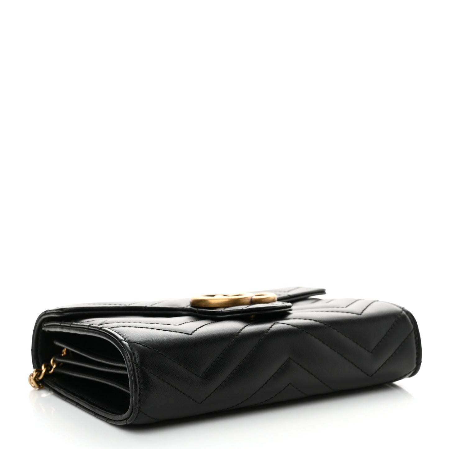 Calfskin Matelasse GG Marmont Chain Wallet Black