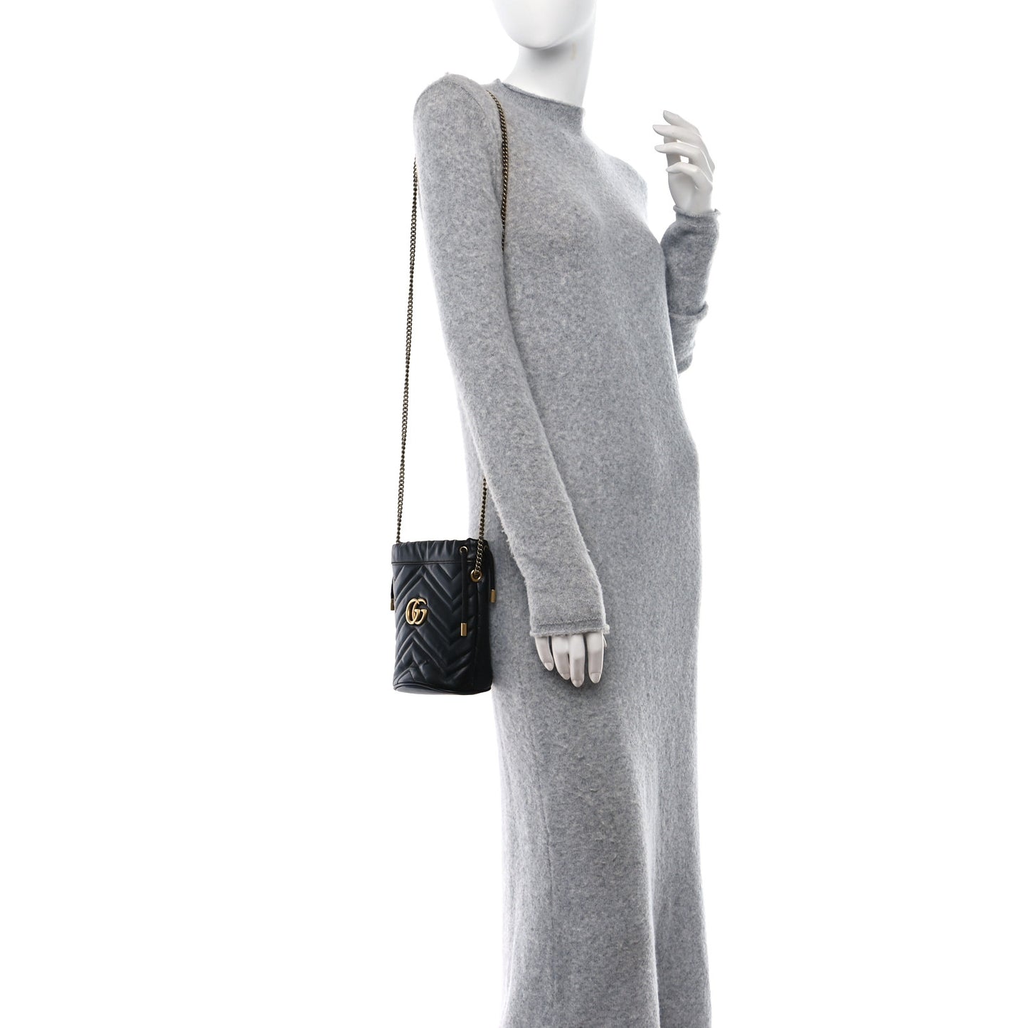 Gucci/ Bags/ Wallet Style /Gucci Calfskin Matelasse Mini GG Marmont 2.0 Bucket Bag Black