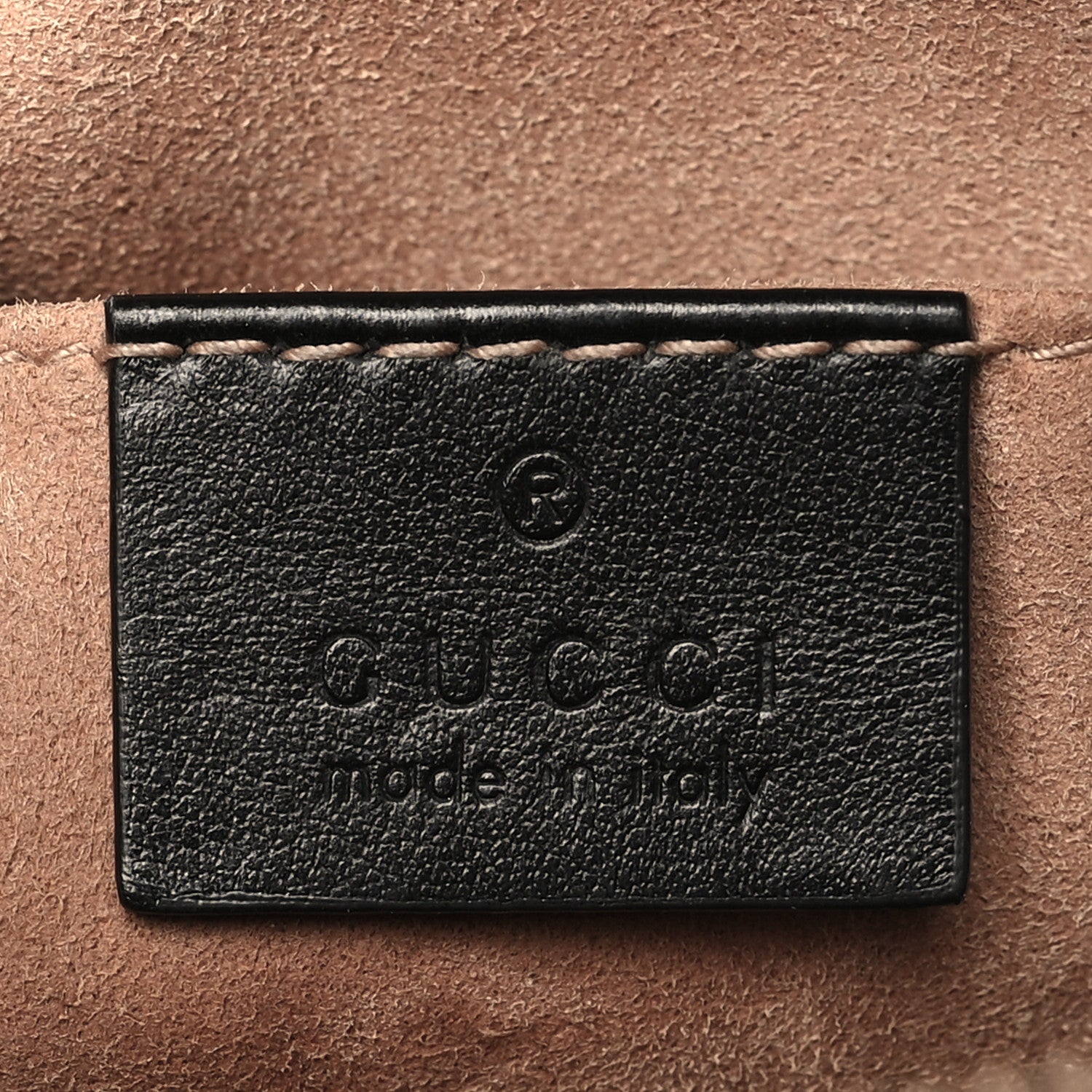 This is an authentic GUCCI Calfskin Matelasse Mini GG Marmont Chain Shoulder Bag in Black. This shoulder bag is crafted of smooth and supple calfskin leather in black with chevron quilting. The bag features an aged gold chain and black leather shoulder strap and a Gucci GG logo on the front. The top zipper opens to a beige microfiber interior with a flat pocket.Follow this item for alerts. Gucci is a registered trademark of Gucci. FASHIONPHILE is not affiliated with Gucci.