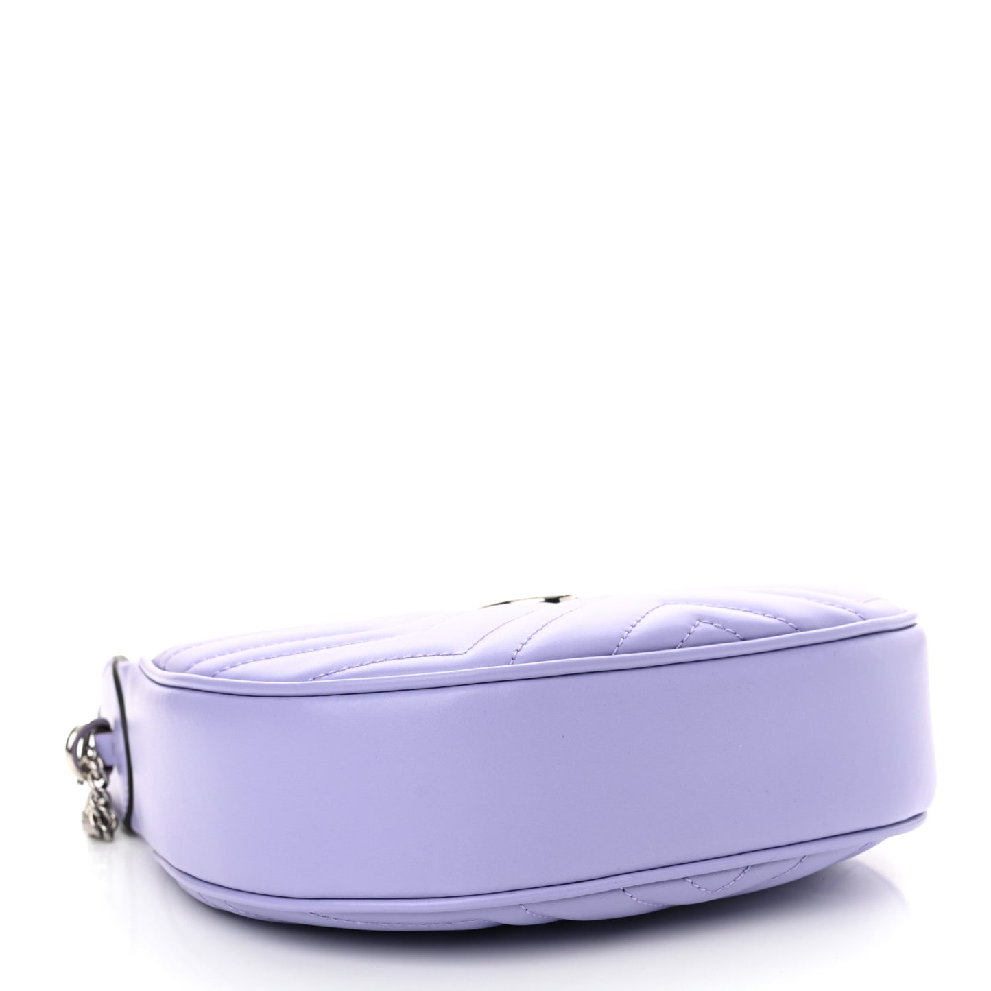 This is an authentic GUCCI Calfskin Matelasse Mini GG Marmont Half Moon Hobo in Lapis. This petite bag boasts a crescent silhouette and is crafted with textured matelassé chevron leather in a stunning purple hue. It is complemented by palladium-toned hardware, an optional chain strap, and a secure zip closure. Inside, you'll find a beige microfiber interior with two card slots and a hook, making it the perfect accessory for your essentials.Follow this item for alerts. Gucci is a registered trademark of Gucci. FASHIONPHILE is not affiliated with Gucci.