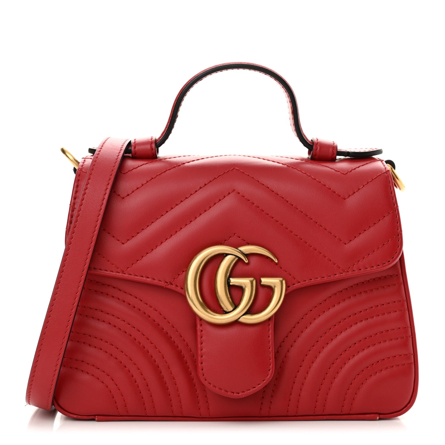 Gucci/ Bags/ Shoulder Bags /Gucci Calfskin Matelasse Mini GG Marmont Top Handle Shoulder Bag Hibiscus Red