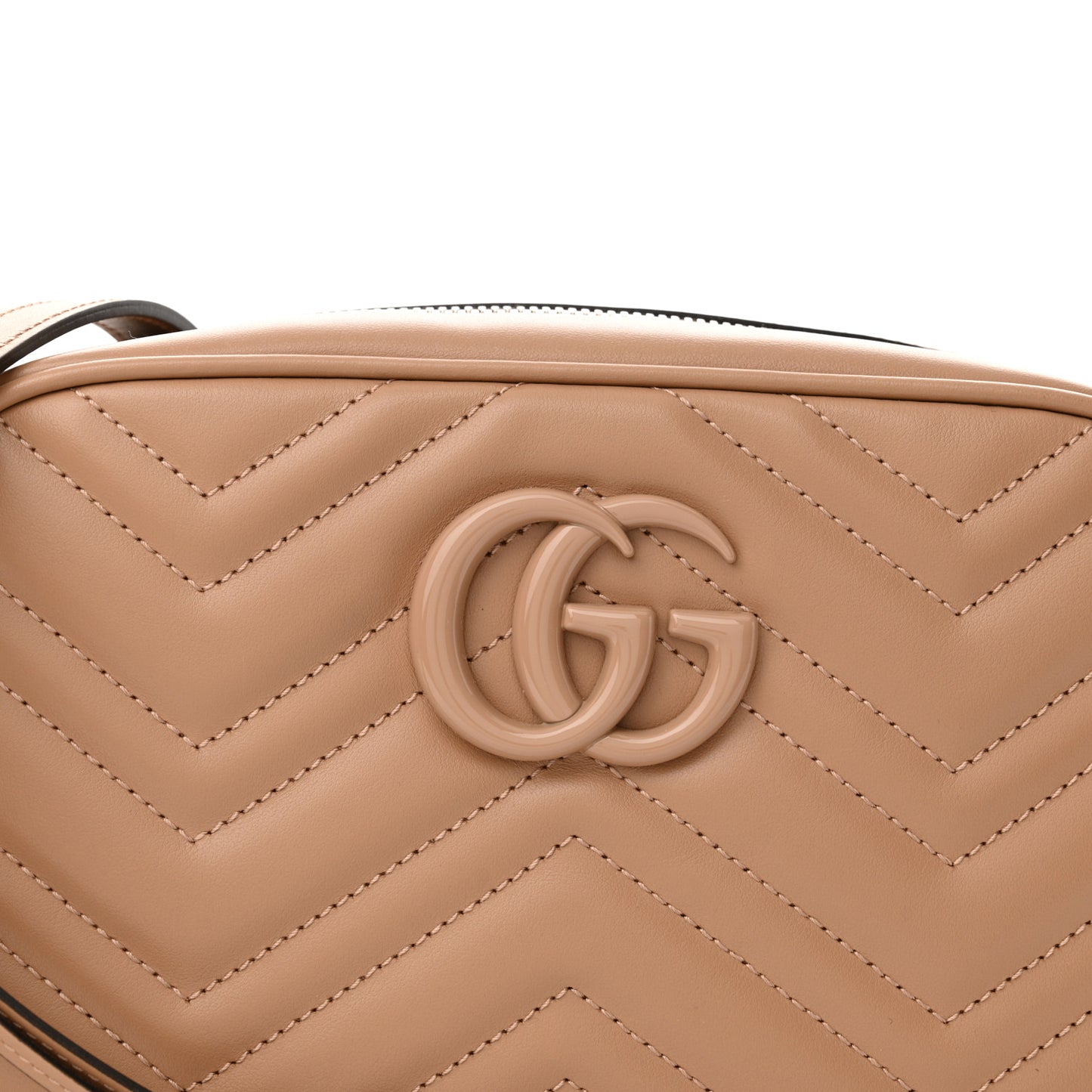 This is an authentic GUCCI Calfskin Matelasse Monochrome Small GG Marmont Chain Shoulder Bag in Camelia. This shoulder bag is crafted of smooth and supple calfskin leather in beige. This bag features a beige chain and leather shoulder strap and a beige Gucci GG logo on the front. The top zipper opens to a beige fabric interior with a leather patch pocket.Follow this item for alerts. Gucci is a registered trademark of Gucci. FASHIONPHILE is not affiliated with Gucci.