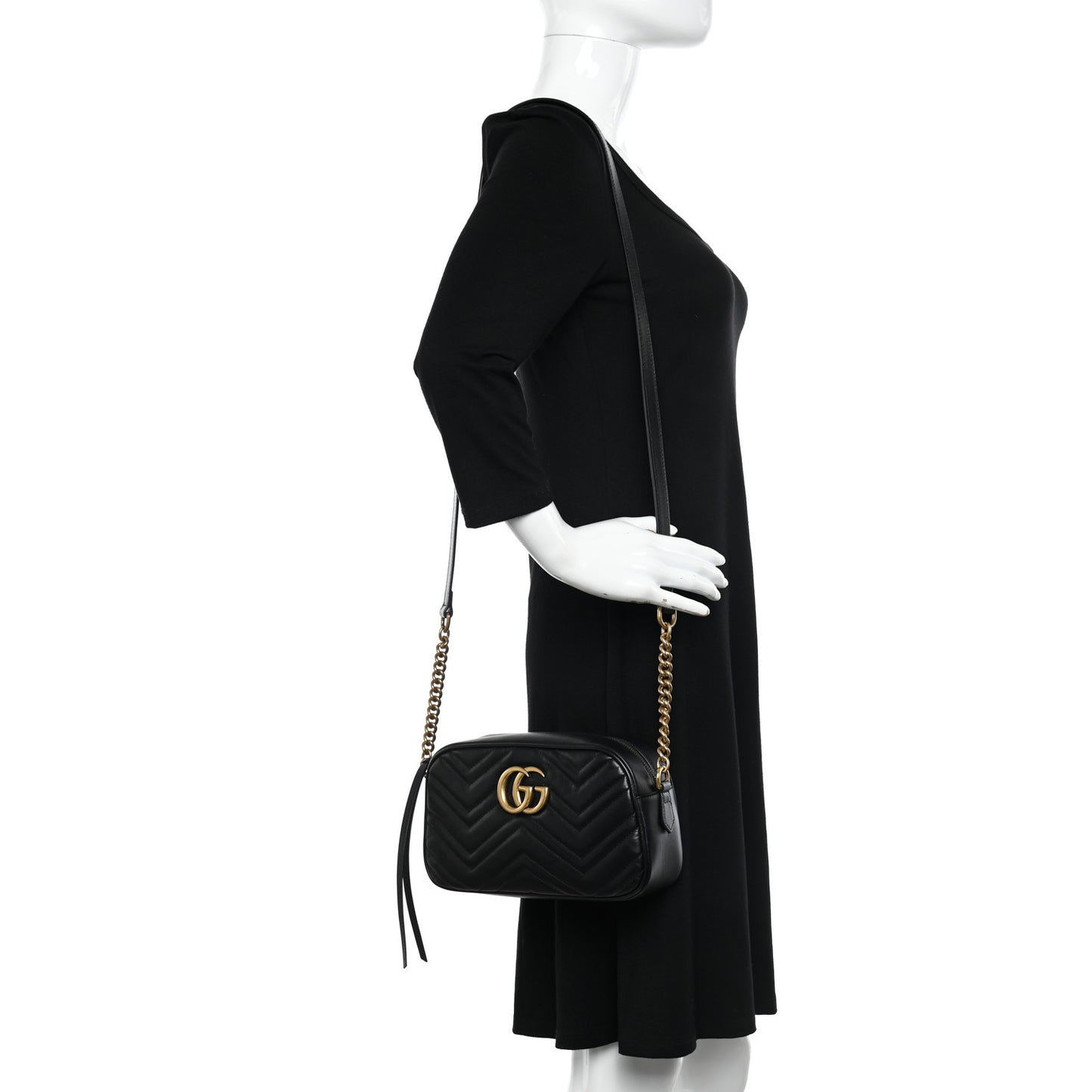 Gucci/ Bags/ Shoulder Bags /Gucci Calfskin Matelasse Small GG Marmont Chain Shoulder Bag Black