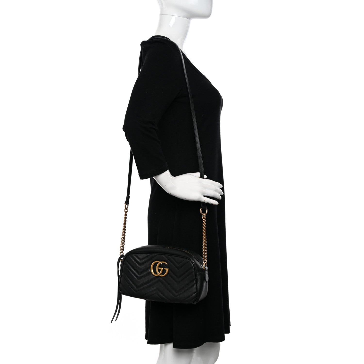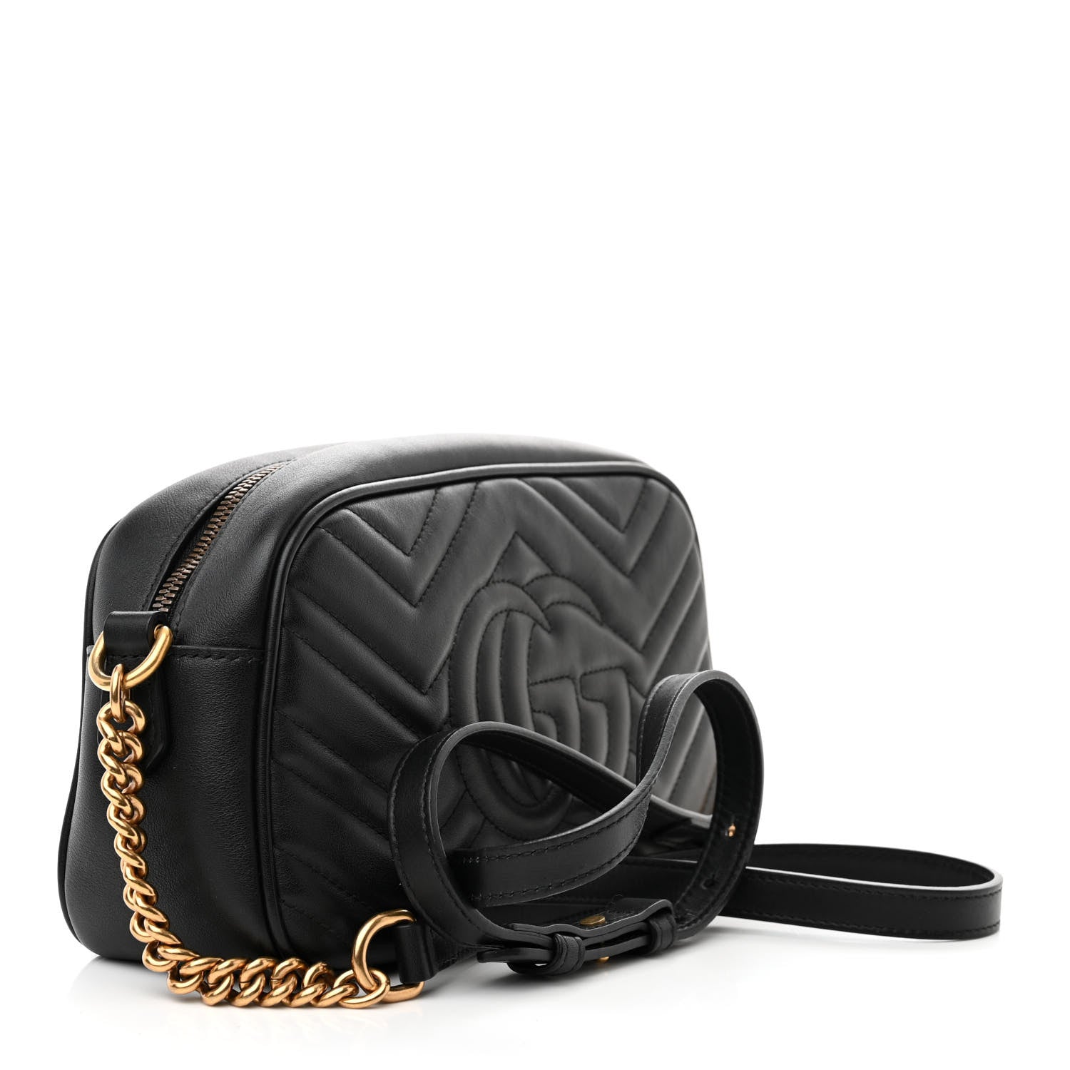 Gucci/ Bags/ Shoulder Bags /Gucci Calfskin Matelasse Small GG Marmont Chain Shoulder Bag Black
