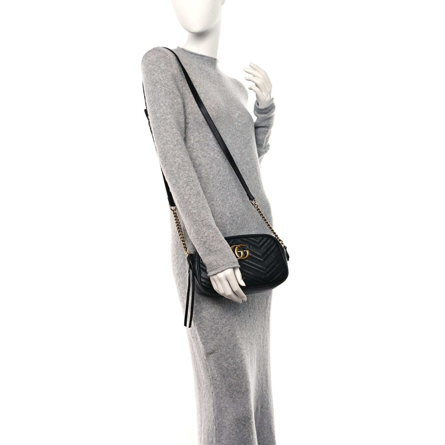 Gucci/ Bags/ Shoulder Bags /Gucci Calfskin Matelasse Small GG Marmont Chain Shoulder Bag Black