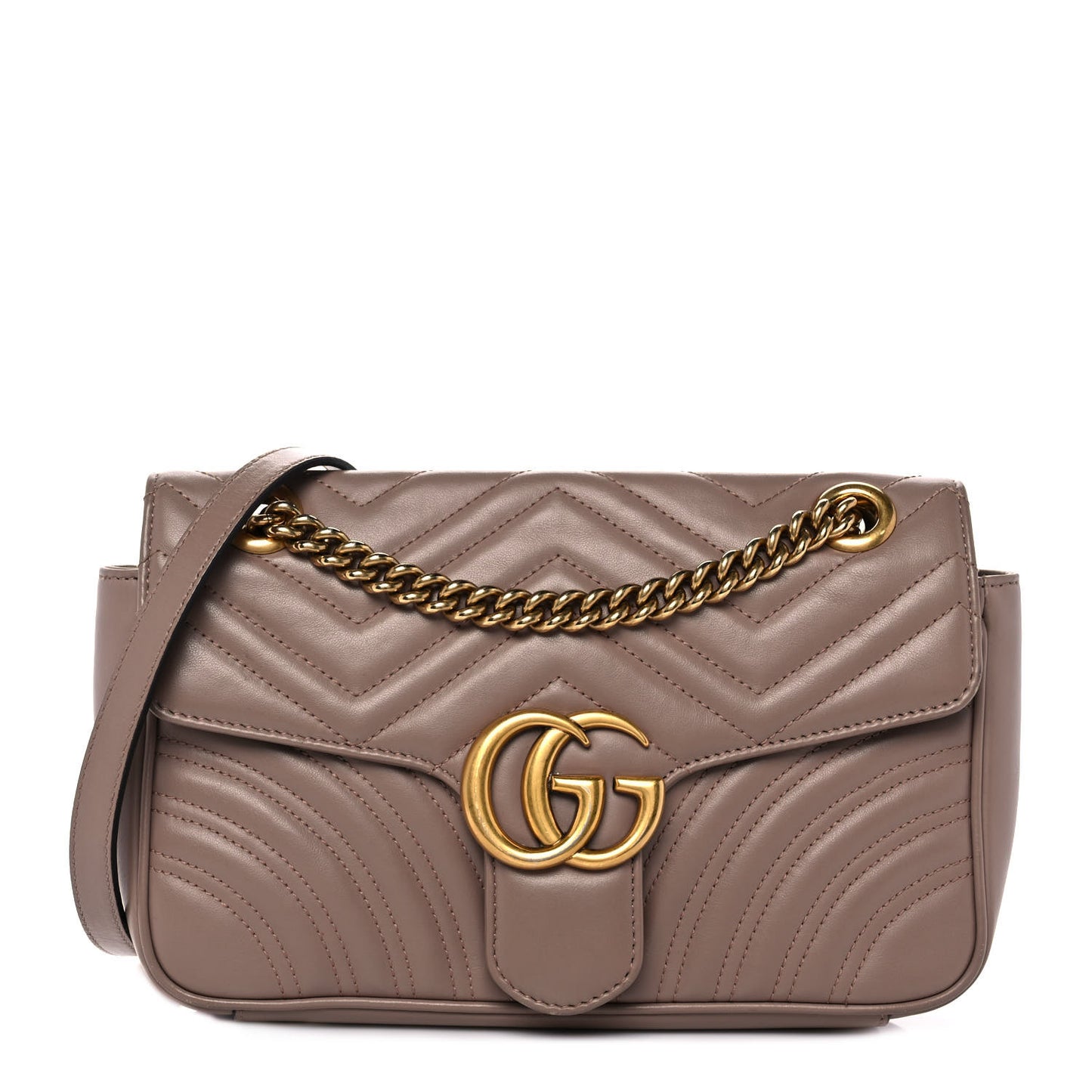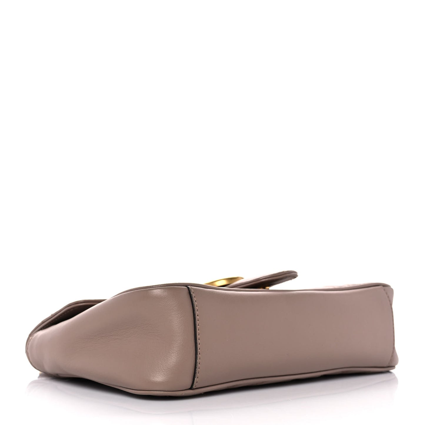 This is an authentic GUCCI Calfskin Matelasse Small GG Marmont Shoulder Bag in Porcelain Rose. This shoulder bag is crafted of smooth and supple calfskin leather in nude. This bag features an aged gold chain shoulder strap with a leather shoulder pad. The crossover flap has an interlocking GG logo and opens to a microfiber interior with a pocket.Follow this item for alerts. Gucci is a registered trademark of Gucci. FASHIONPHILE is not affiliated with Gucci.