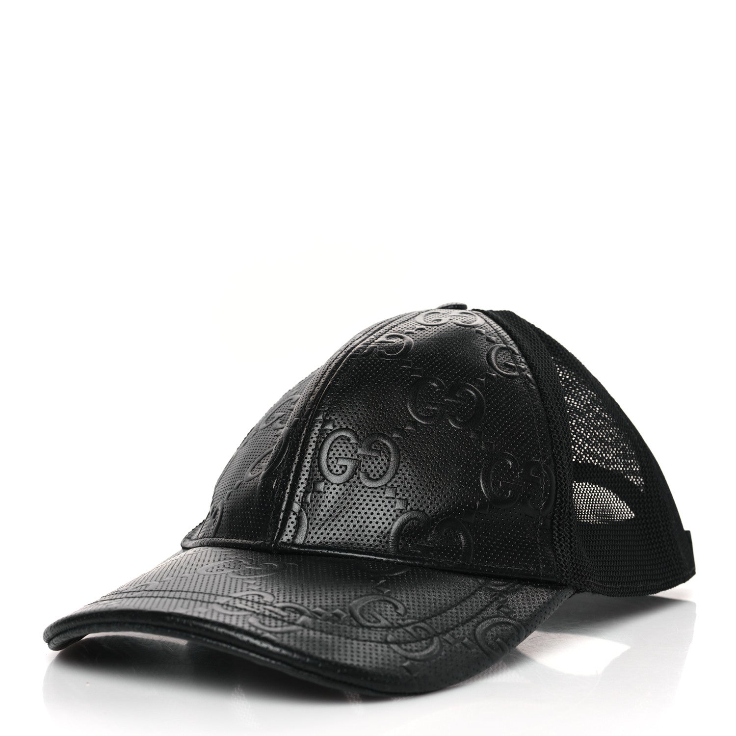 Gucci/ Accessories/ Hats /Gucci Calfskin Mesh GG Tennis Embossed Gary Baseball Hat L Black