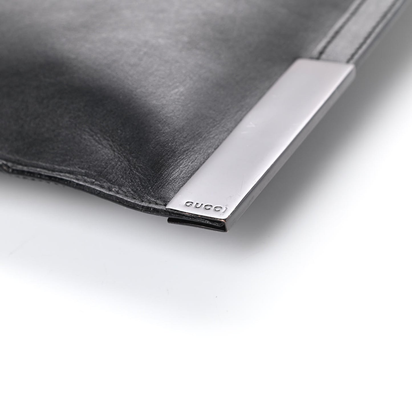 This is an authentic GUCCI Calfskin Shoulder Bag in Black. This shoulder bag is crafted of smooth calfskin leather in black. The bag features metal accents at the corners and a leather shoulder strap. The bag opens to a black microfiber interior with a leather card slot.Follow this item for alerts. Gucci is a registered trademark of Gucci. FASHIONPHILE is not affiliated with Gucci.