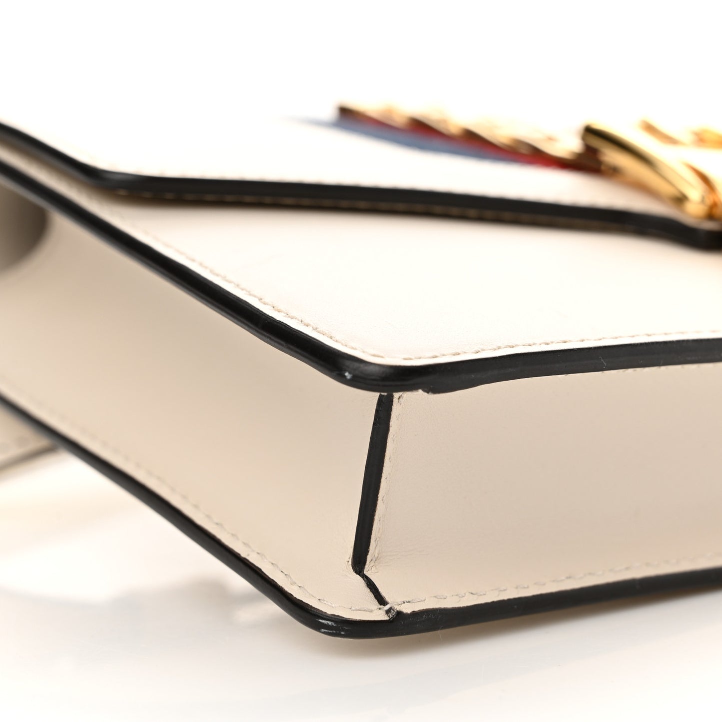 This is an authentic GUCCI Calfskin Sylvie Belt Bag in Off White. This belt bag is crafted of smooth white calfskin leather. It features a belt that can be worn as a belt bag or cross body, prominent front flap detailed with a central nylon red and blue web stripe embellished with a chain buckle lock closure. It opens to a beige rose microfiber interior with a zipper and patch pocket.Follow this item for alerts. Gucci is a registered trademark of Gucci. FASHIONPHILE is not affiliated with Gucci.