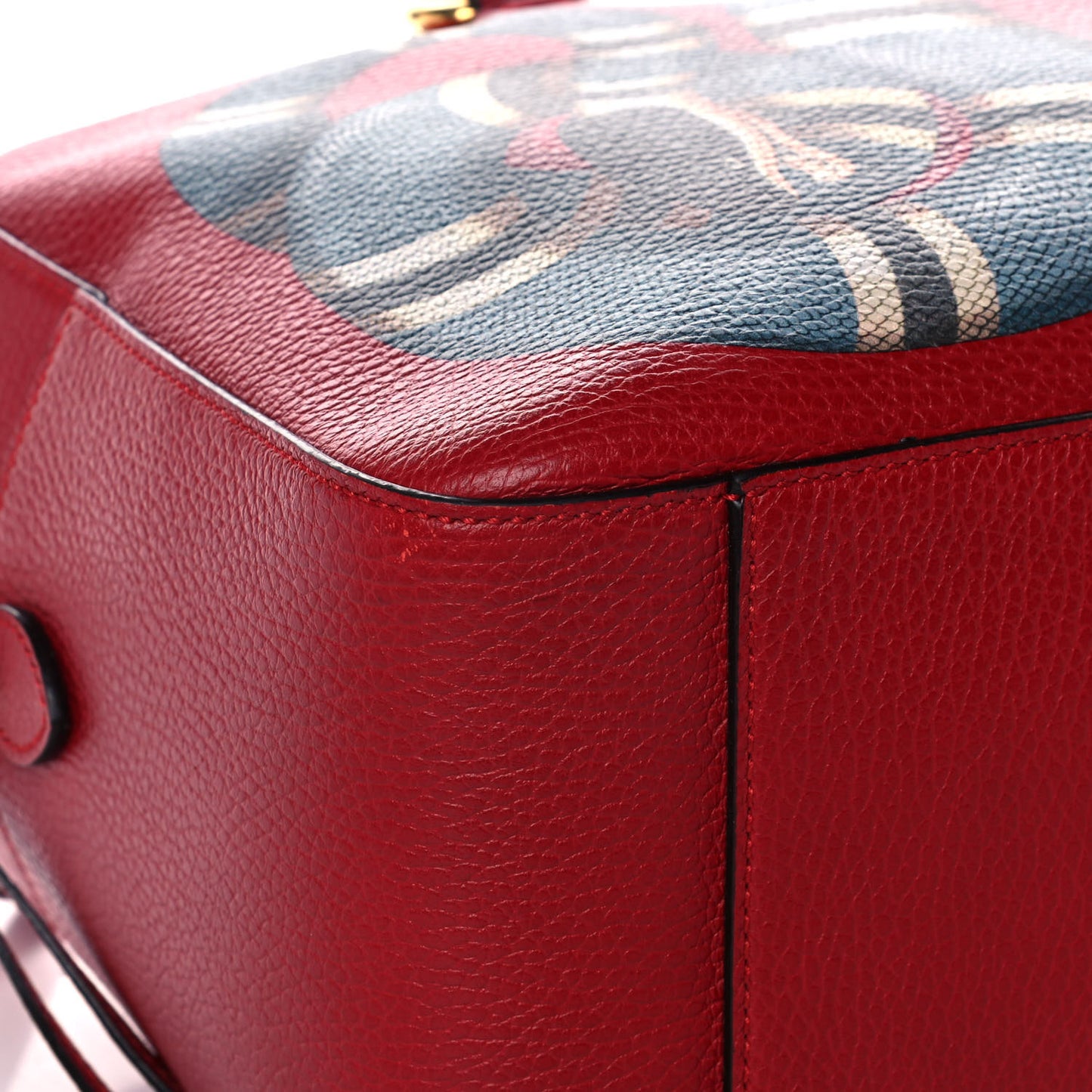 This is an authentic GUCCI Calfskin Sylvie Web Kingsnake Print Top Handle Shoulder Bag in Red. This stylish crossbody is crafted of red calfskin leather with printed tiger graphics. This shoulder bag features a blue, white, and red canvas web shoulder strap and the top zipper opens to a beige course linen interior.Follow this item for alerts. Gucci is a registered trademark of Gucci. FASHIONPHILE is not affiliated with Gucci.