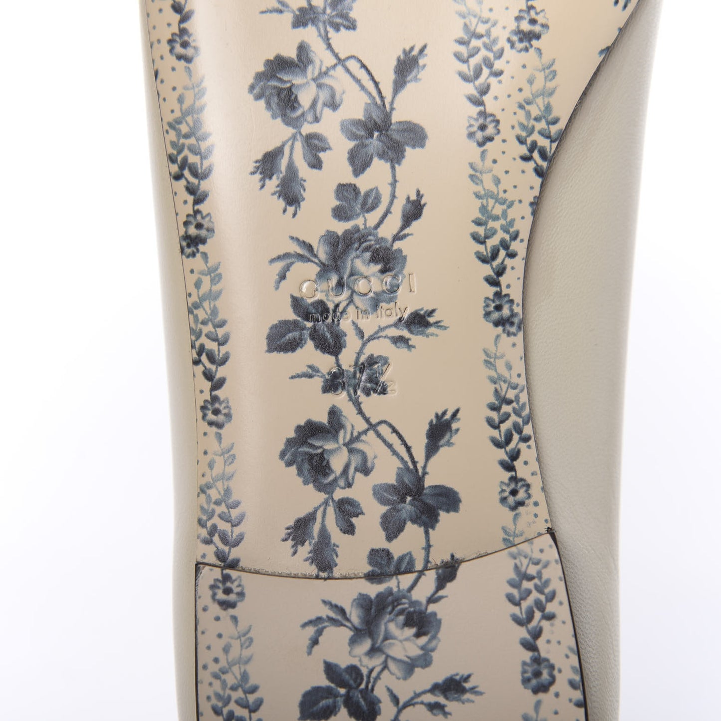 This is an authentic pair of GUCCI Calfskin Web Bow Womens Ballet Flats size 37.5 in Black and Vintage White. These chic flats are crafted of smooth white calfskin leather. They feature a green and red bow on the top of the shoe and a black leather toe cap. These have a unique look for the right occasion, from Gucci.Follow this item for alerts. Gucci is a registered trademark of Gucci. FASHIONPHILE is not affiliated with Gucci.