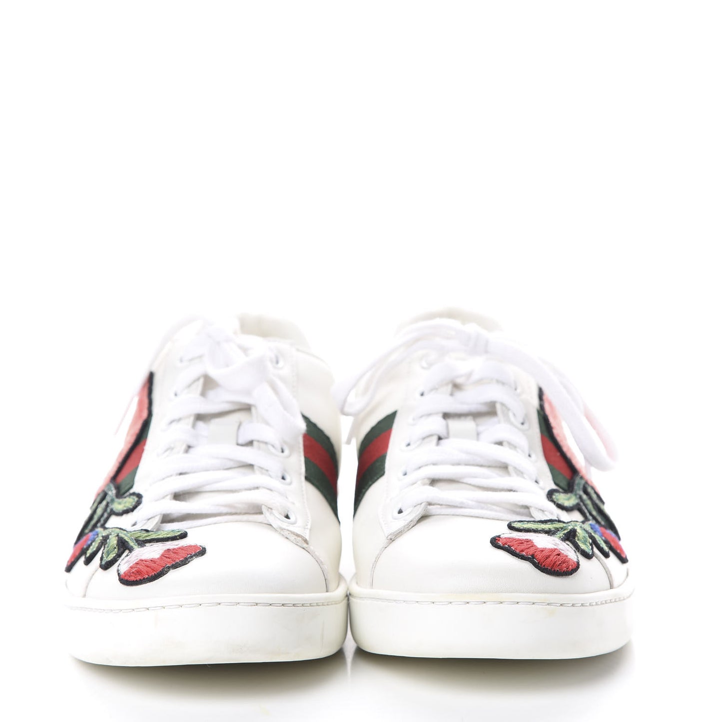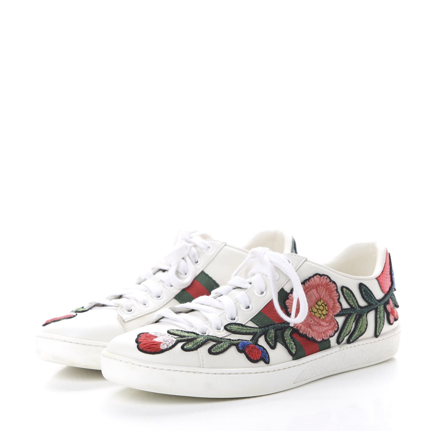 Gucci/ Accessories/ Shoes /Gucci Calfskin Web Floral Embroidered Womens Ace Sneakers 39.5 White