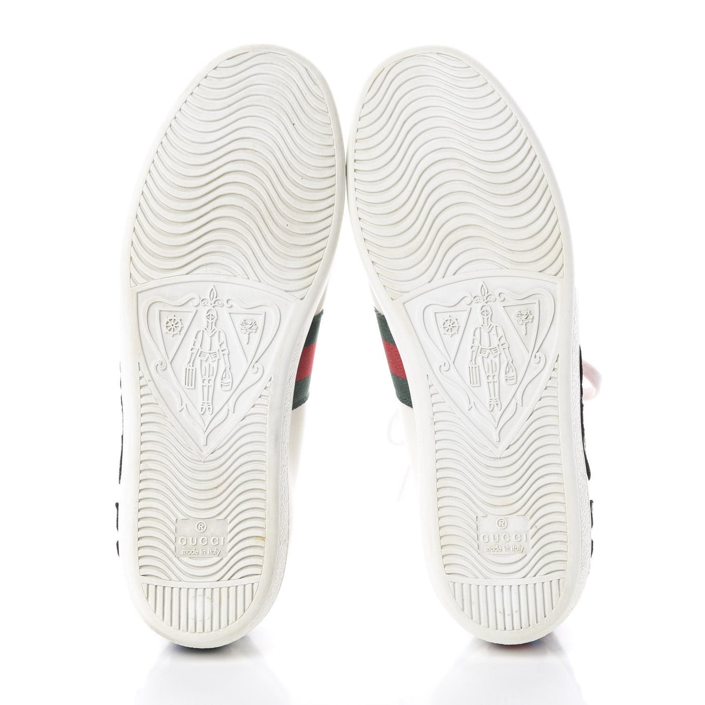 Calfskin Web Floral Embroidered Womens Ace Sneakers 39.5 White