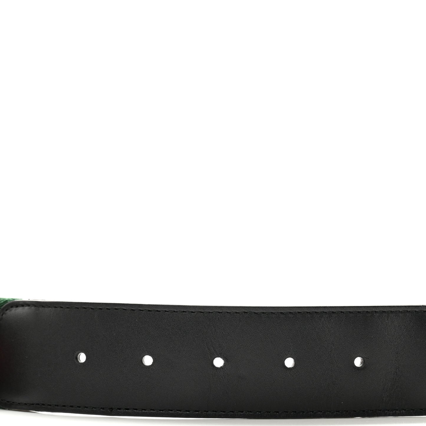 This is an authentic GUCCI Calfskin Web Interlocking G Belt in Black. This sophisticated belt is crafted of a black calfskin leather with green and red web striped canvas overlaid and a polished silver tone interlocking GG buckle.Follow this item for alerts. Gucci is a registered trademark of Gucci. FASHIONPHILE is not affiliated with Gucci.