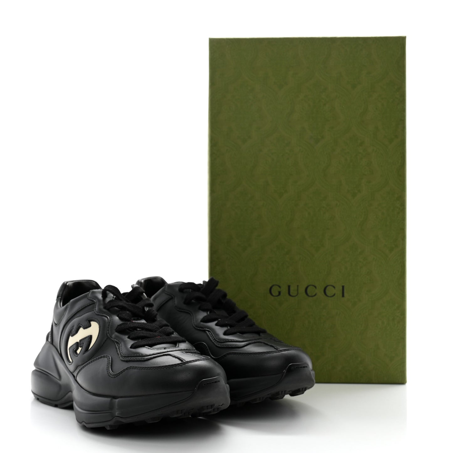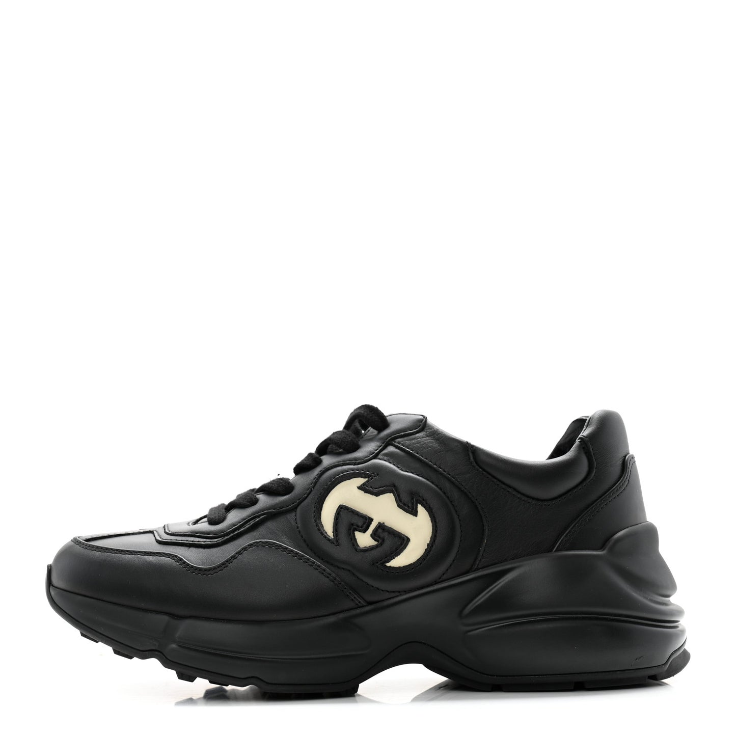 Gucci/ Accessories/ Shoes /Gucci Dali Soft Calfskin Cut Out Interlocking G Womens Rhyton Sneakers 37 Black Ivoire