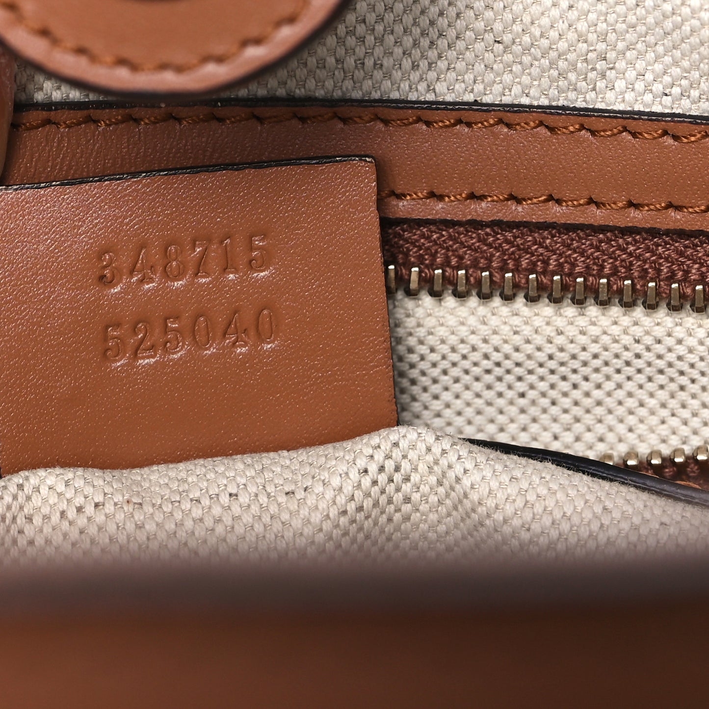 This is an authentic GUCCI Denim Calfskin Tote in Brown. This stylish tote is crafted of dark blue denim with a Gucci logo on the front and brown leather trim. The bag features brown leather top handles and a magnetic strap that opens to a beige fabric interior with zipper and patch pockets.Follow this item for alerts. Gucci is a registered trademark of Gucci. FASHIONPHILE is not affiliated with Gucci.