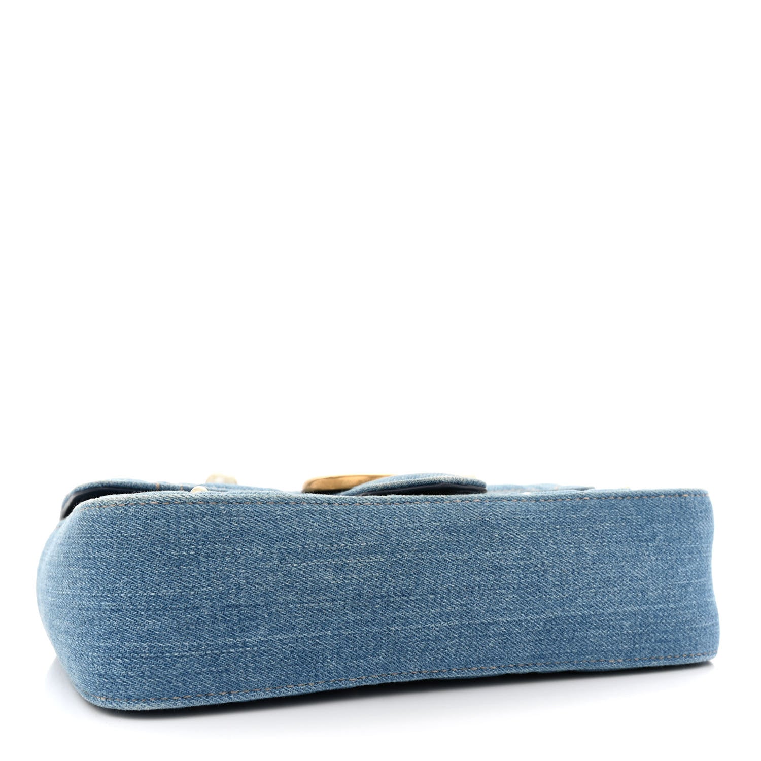 Gucci/ Bags/ Shoulder Bags /Gucci Denim Matelasse Pearl Studded Mini GG Marmont Shoulder Bag Blue