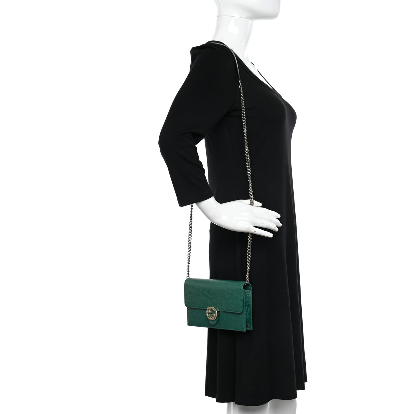 Gucci/ Bags/ Wallet Style /Gucci Dollar Calfskin Interlocking G Chain Wallet Emerald