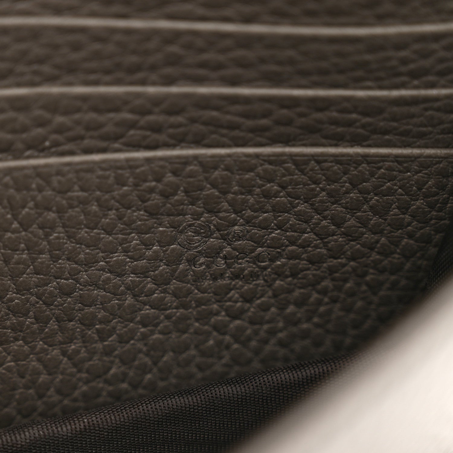This is an authentic GUCCI Dollar Calfskin Interlocking G Chain Wallet in Loess. This stylish wallet is crafted of textured calfskin leather in gray. It features a front flap with a polished light gold interlocking G logo and an optional crossbody shoulder strap. The flap opens to a leather interior with card slots and a zipper compartment.Follow this item for alerts. Gucci is a registered trademark of Gucci. FASHIONPHILE is not affiliated with Gucci.
