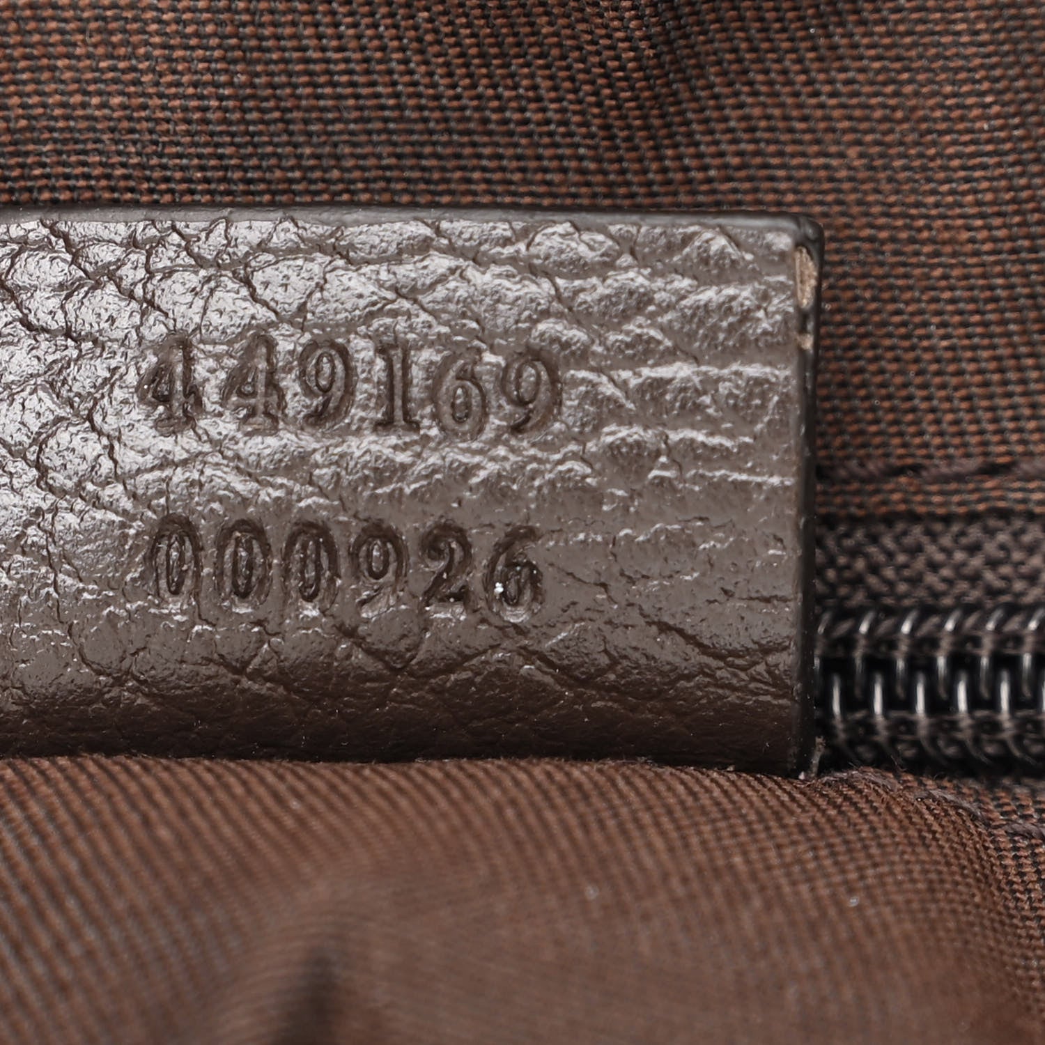 This is an authentic GUCCI GG Monogram Large Joy Tote Bag in Dark Brown. This chic tote is finely crafted of classic brown and beige GG monogram canvas. This bag features brown leather top handles, and optional adjustable canvas shoulder strap and dark brown trim with polished silver hardware. The top is open broadly to a partitioned brown fabric interior with a central zippered compartment, zipper and patch pockets.Follow this item for alerts. Gucci is a registered trademark of Gucci. FASHIONPHILE is not affiliated with Gucci.