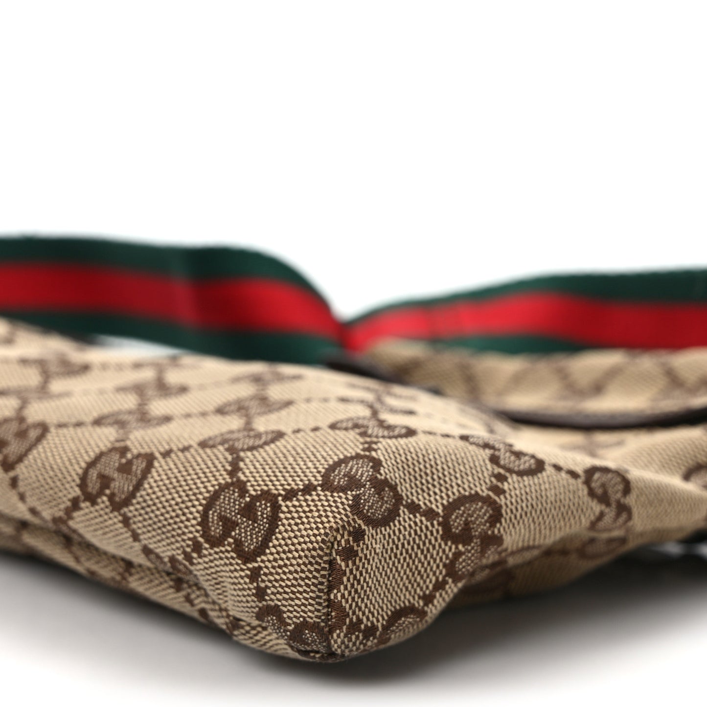 This is an authentic GUCCI GG Monogram Web Double Pocket Belt Bag in Dark Brown. This chic belt bag is finely crafted of classic brown on beige Gucci GG monogram canvas. The bag features two boxy exterior pockets on one side and a wide zippered pocket on the reverse with a green and red fabric strap. The exterior pockets include a leather flap pocket and a zipper pocket with leather trim.Follow this item for alerts. Gucci is a registered trademark of Gucci. FASHIONPHILE is not affiliated with Gucci.