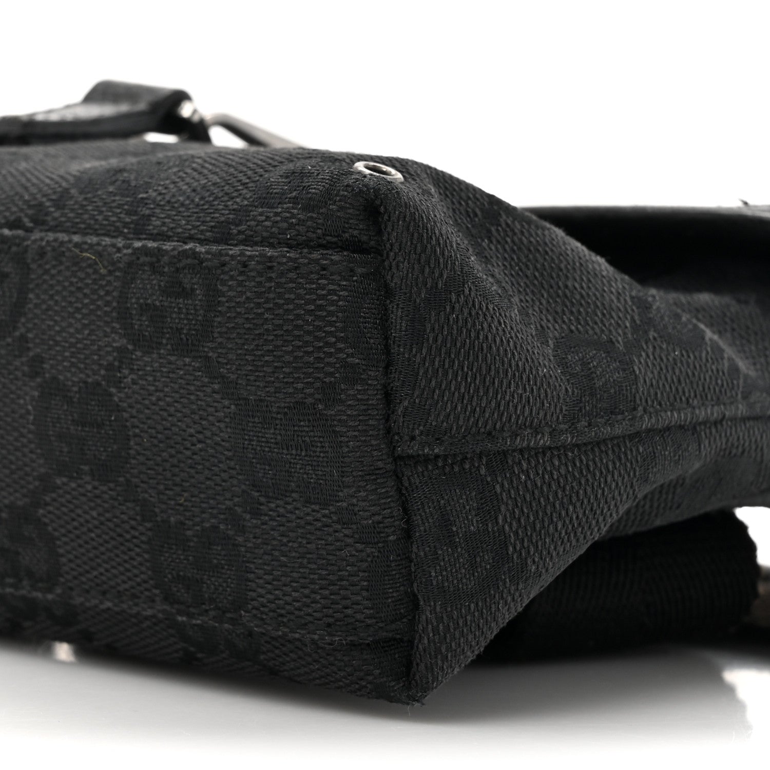 This is an authentic GUCCI GG Monogram Web Flight Belt Bag in Black. This chic belt bag is crafted of monogram canvas in black. The belt bag features black leather trim and a canvas black belt with polished silver clasp. The front flap that opens to a spacious black fabric interior with a zipper pocket.Follow this item for alerts. Gucci is a registered trademark of Gucci. FASHIONPHILE is not affiliated with Gucci.