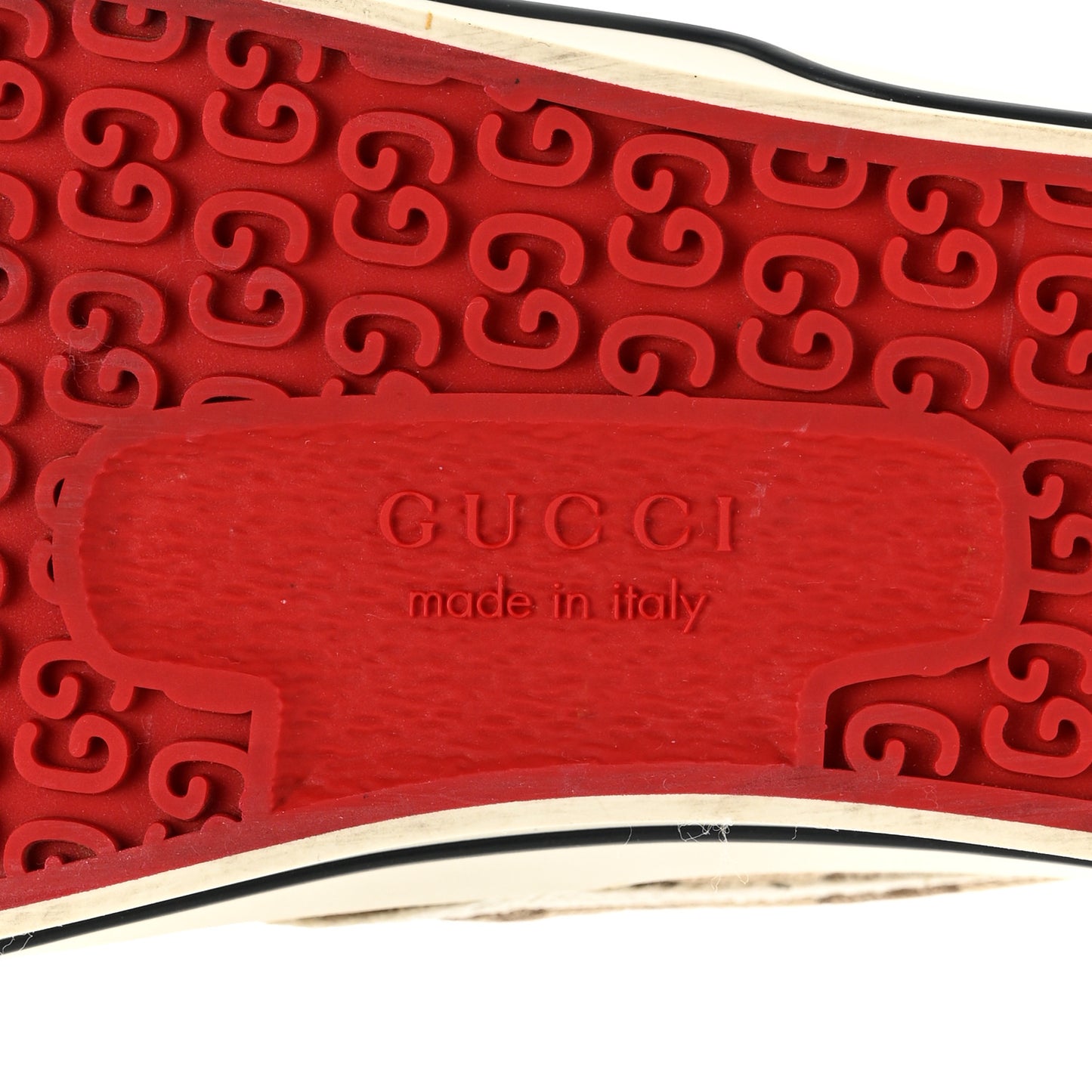 This is an authentic pair of GUCCI GG Monogram Womens 1977 Tennis Slip On 30mm Sneakers size 40 in Beige, Ebony, and Mystic White. These stylish sneakers are crafted of monogram beige canvas in a slip-on design. They feature white fabric trim and red soles.Follow this item for alerts. Gucci is a registered trademark of Gucci. FASHIONPHILE is not affiliated with Gucci.